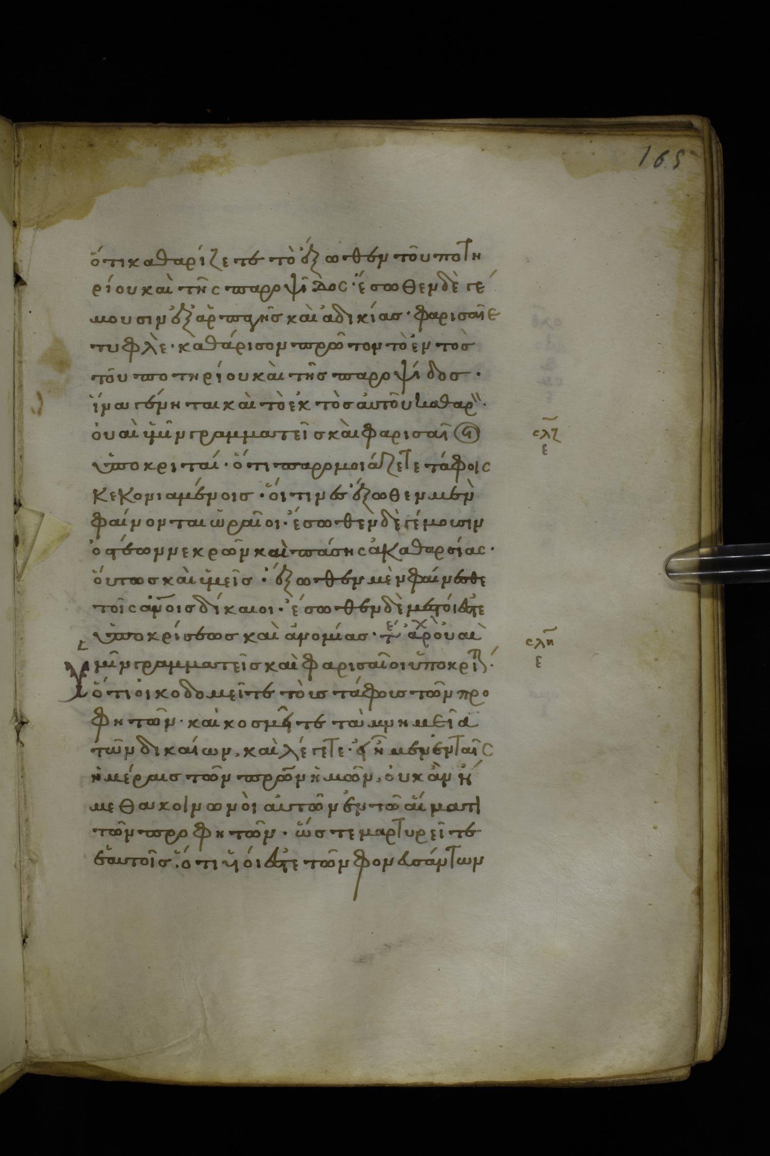 Fourteenth century minuscule of the Gospels on parchment; 282 leaves, 1 column, 22-23 lines per column. Images were taken at the National Library of Greece in Athens.