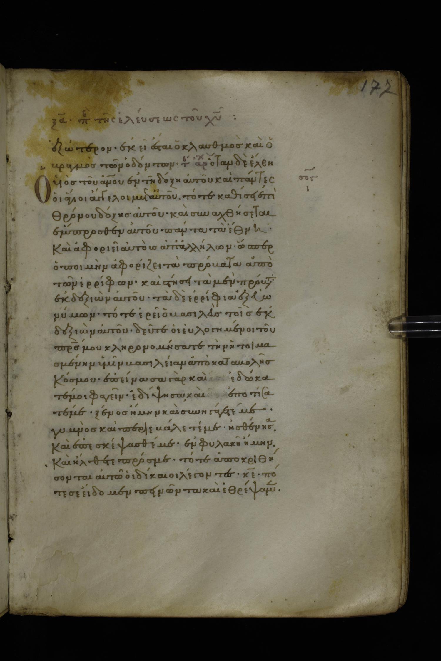 Fourteenth century minuscule of the Gospels on parchment; 282 leaves, 1 column, 22-23 lines per column. Images were taken at the National Library of Greece in Athens.