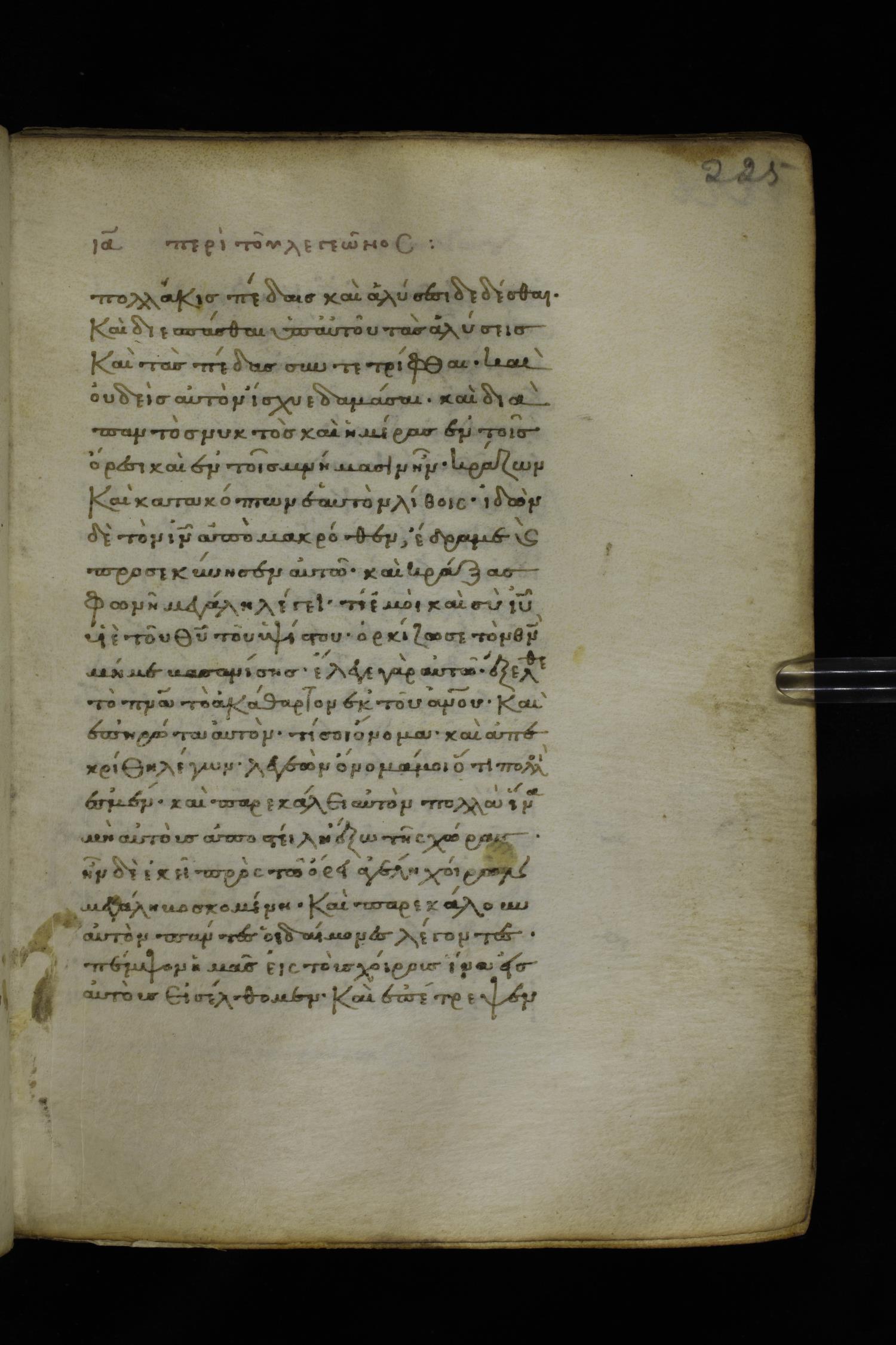Fourteenth century minuscule of the Gospels on parchment; 282 leaves, 1 column, 22-23 lines per column. Images were taken at the National Library of Greece in Athens.