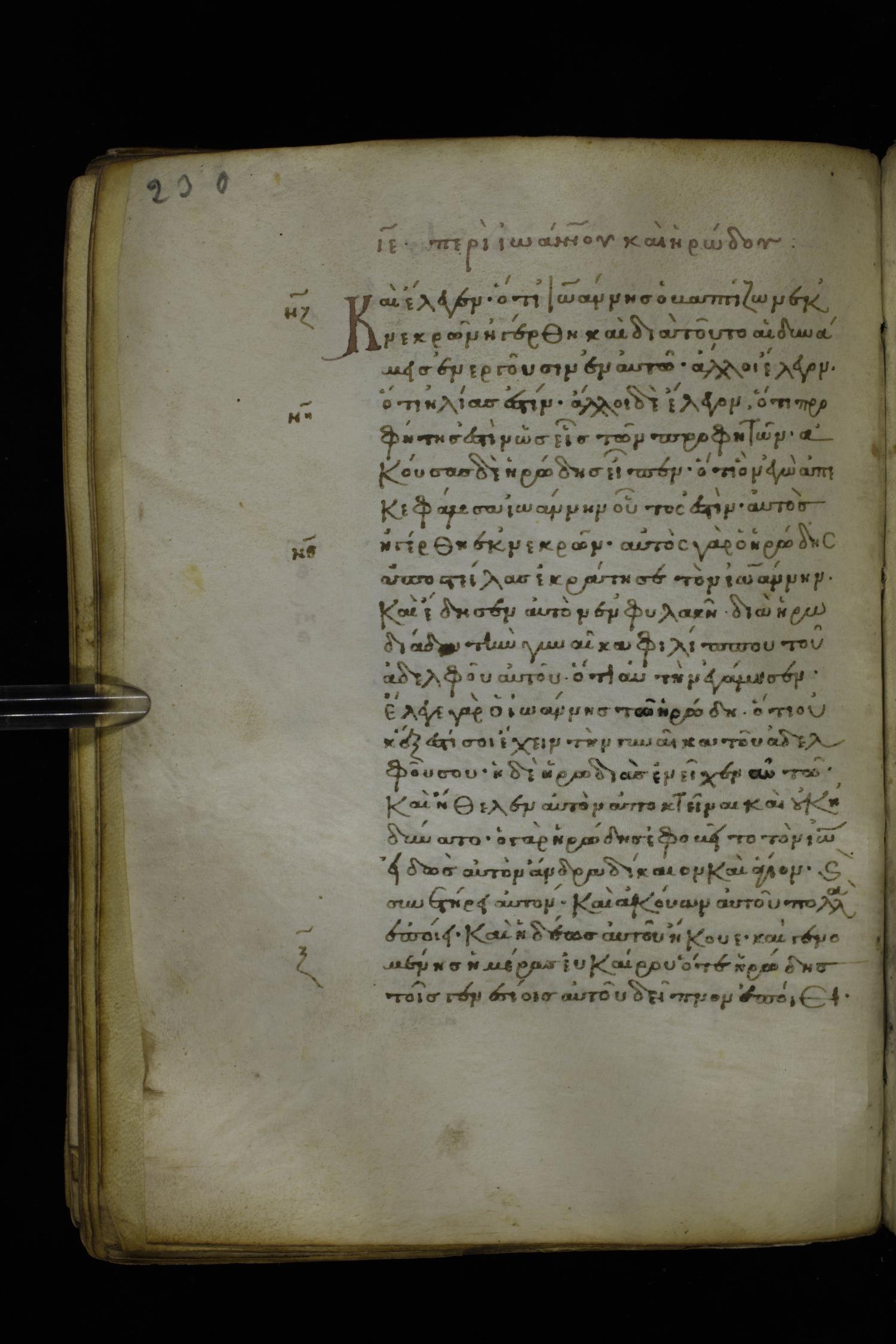 ὁ γὰρ Ἡρῴδης ἐφοβεῖτο τὸν Ἰωάνην / Ἰωάννην, εἰδὼς αὐτὸν ἄνδρα δίκαιον καὶ ἅγιον, καὶ συνετήρει αὐτόν, καὶ ἀκούσας αὐτοῦ πολλὰ ἠπόρει, καὶ ἡδέως αὐτοῦ ἤκουεν.