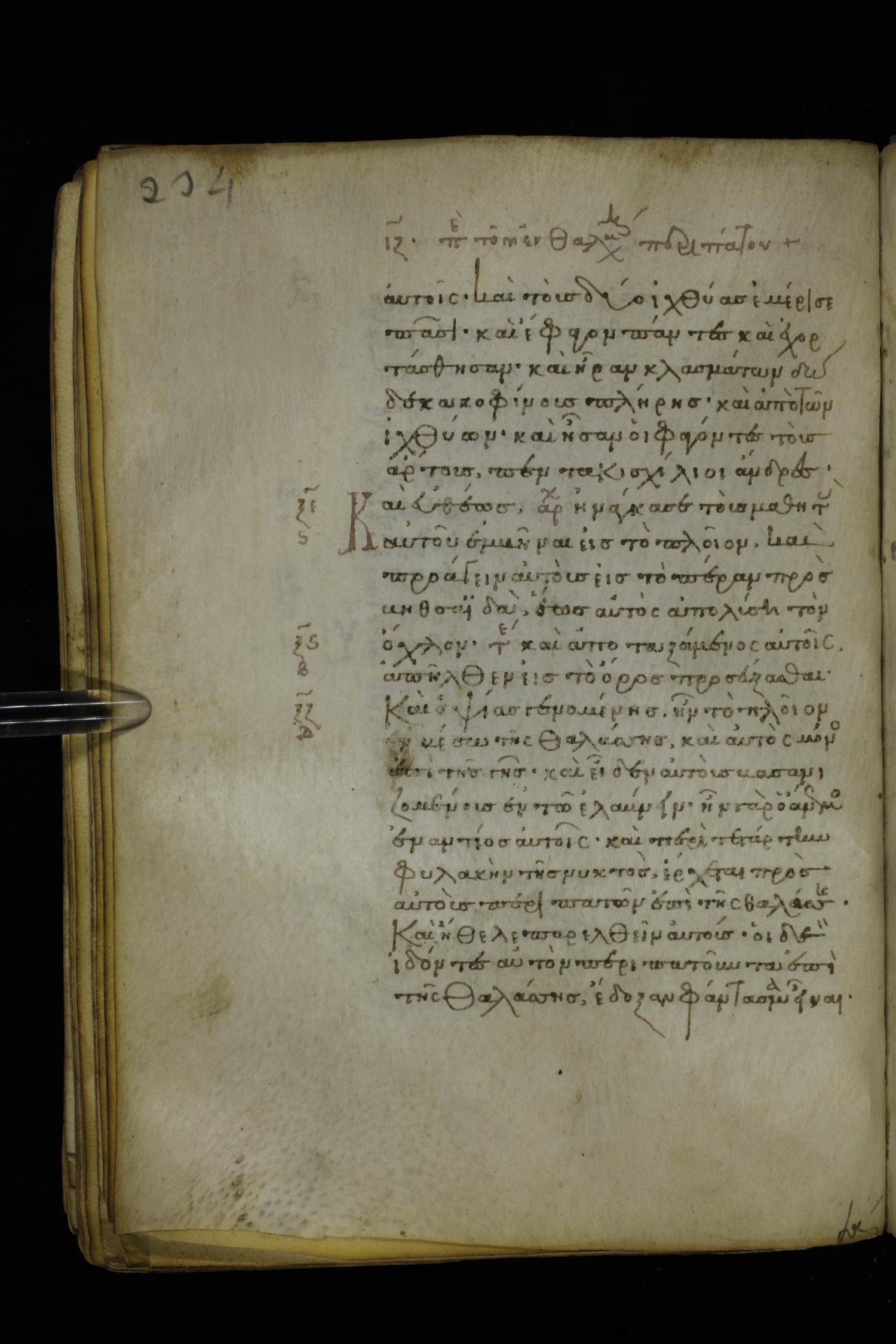 Fourteenth century minuscule of the Gospels on parchment; 282 leaves, 1 column, 22-23 lines per column. Images were taken at the National Library of Greece in Athens.