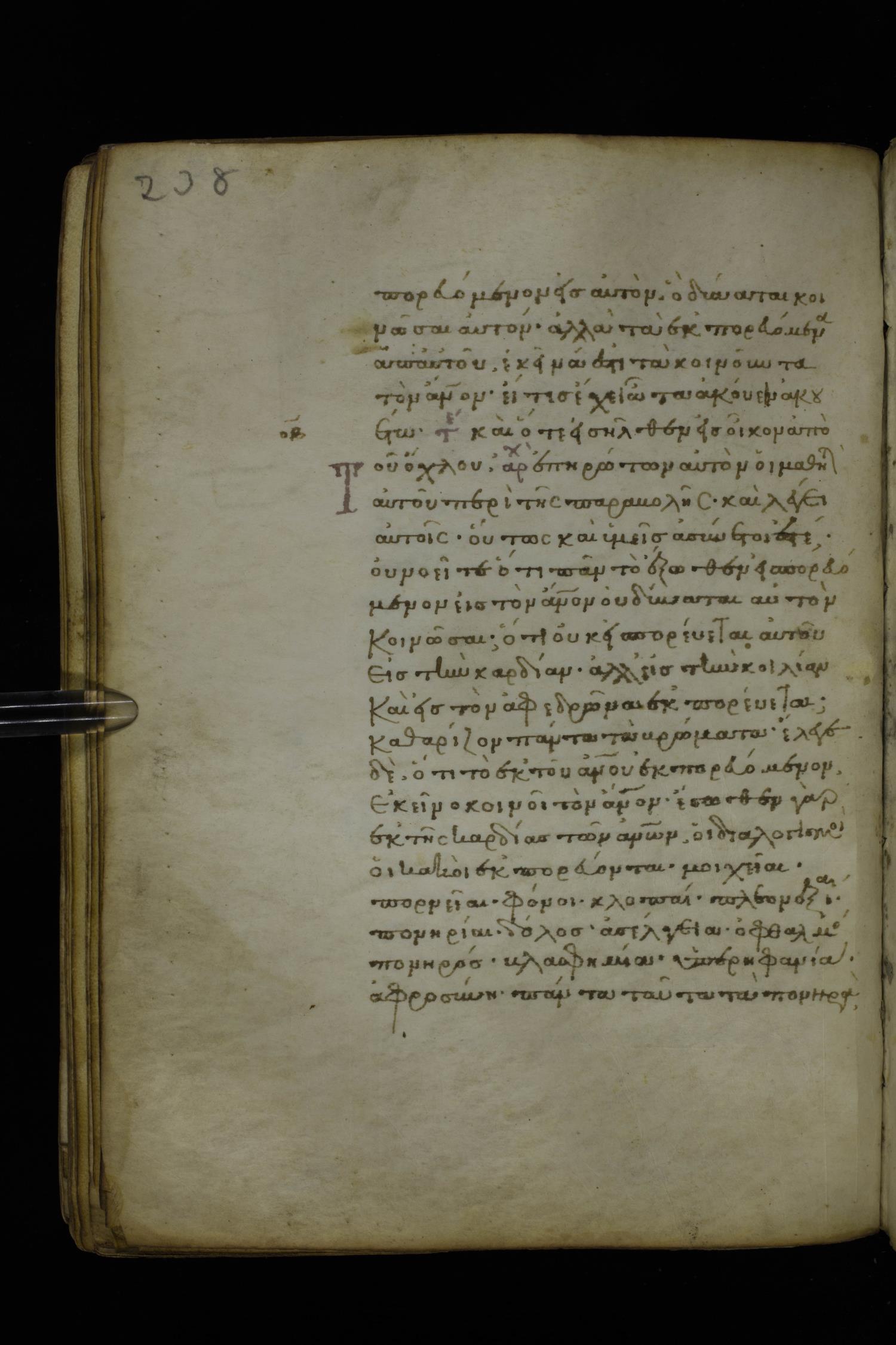 Fourteenth century minuscule of the Gospels on parchment; 282 leaves, 1 column, 22-23 lines per column. Images were taken at the National Library of Greece in Athens.
