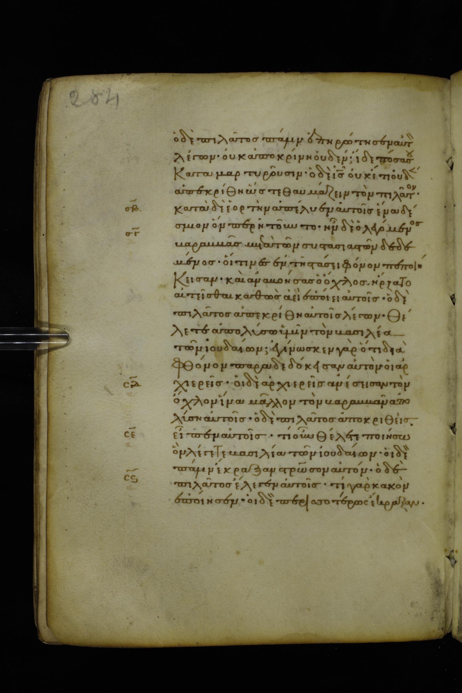 Fourteenth century minuscule of the Gospels on parchment; 282 leaves, 1 column, 22-23 lines per column. Images were taken at the National Library of Greece in Athens.