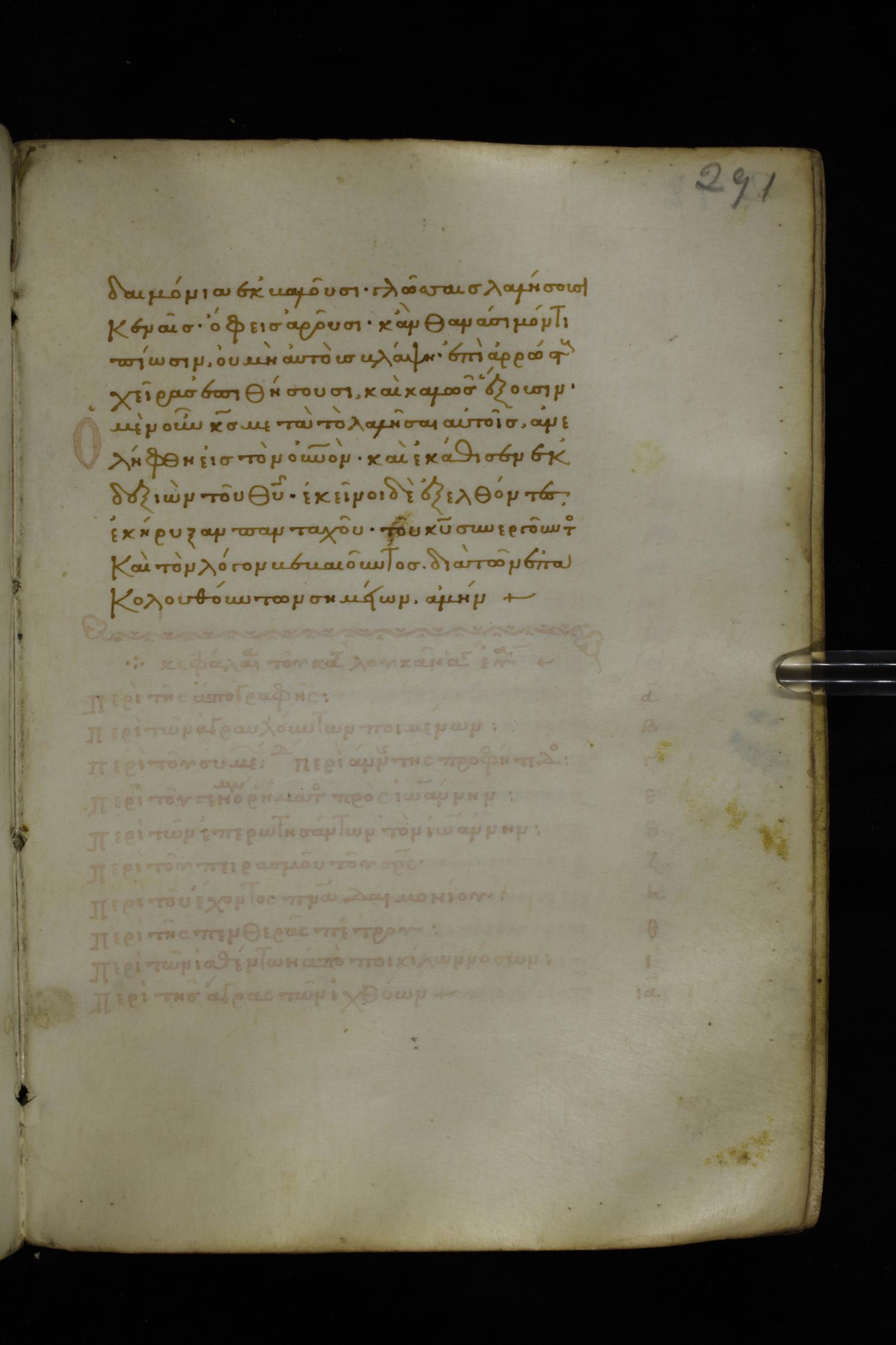 Fourteenth century minuscule of the Gospels on parchment; 282 leaves, 1 column, 22-23 lines per column. Images were taken at the National Library of Greece in Athens.