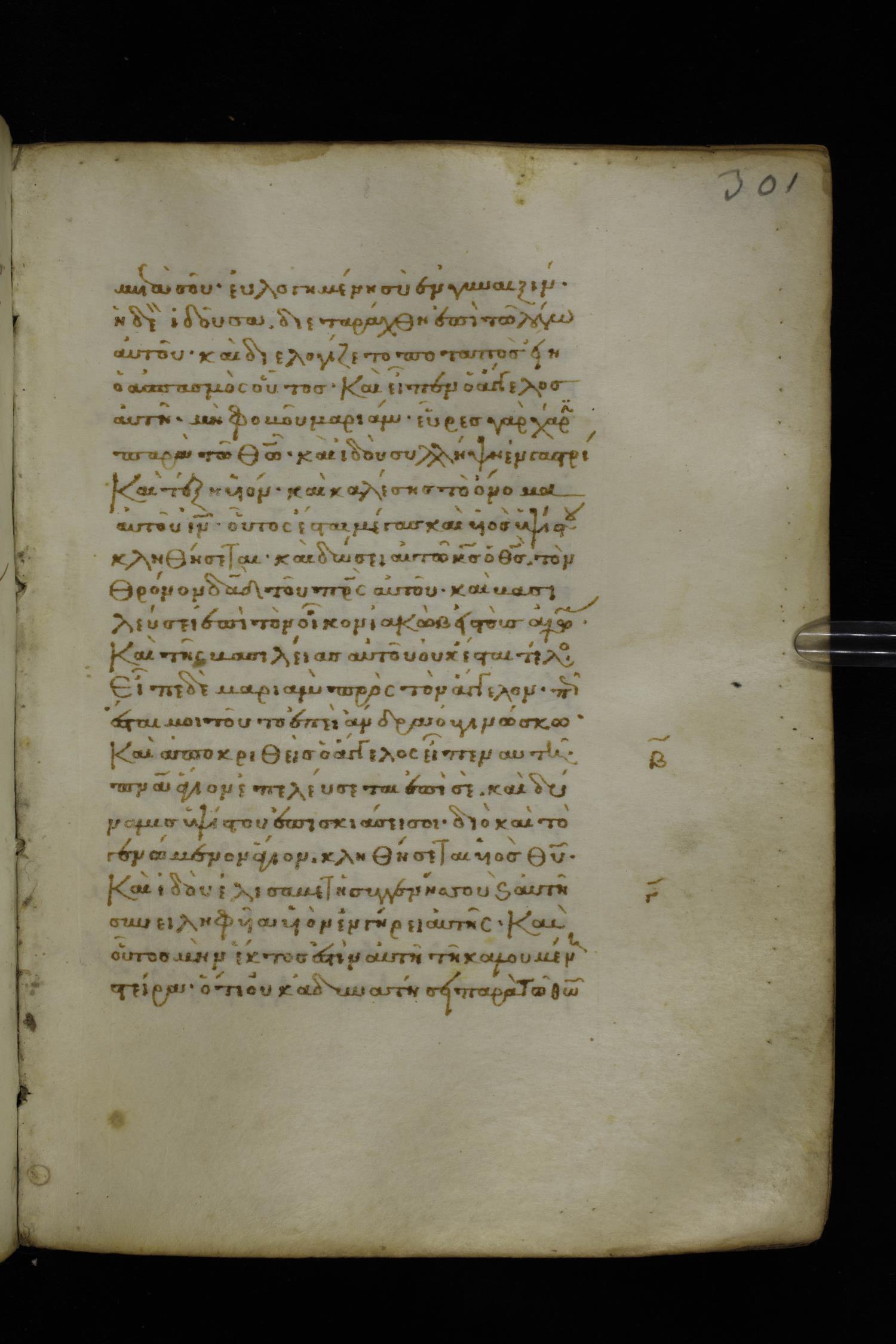Fourteenth century minuscule of the Gospels on parchment; 282 leaves, 1 column, 22-23 lines per column. Images were taken at the National Library of Greece in Athens.
