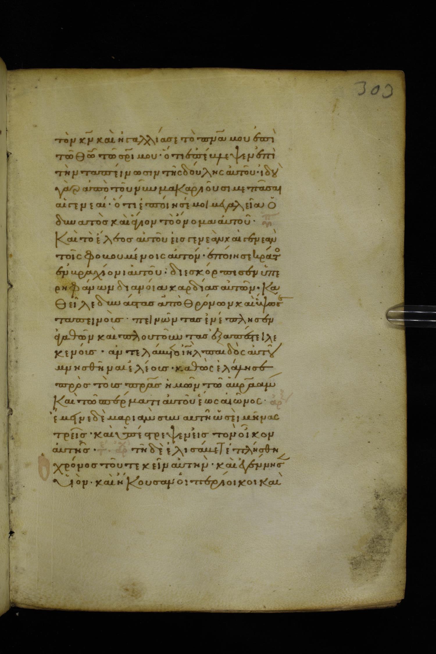 Fourteenth century minuscule of the Gospels on parchment; 282 leaves, 1 column, 22-23 lines per column. Images were taken at the National Library of Greece in Athens.