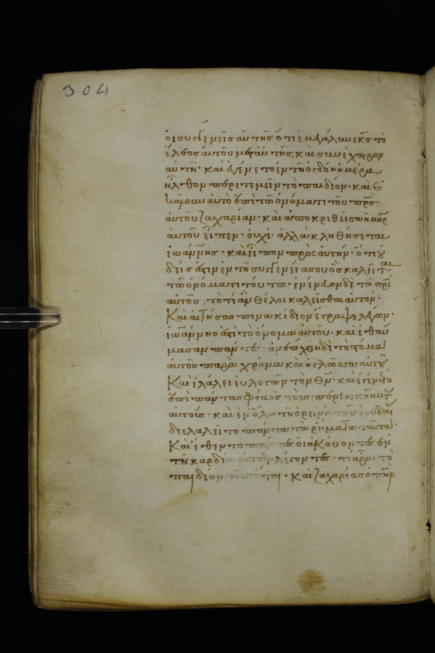 Fourteenth century minuscule of the Gospels on parchment; 282 leaves, 1 column, 22-23 lines per column. Images were taken at the National Library of Greece in Athens.