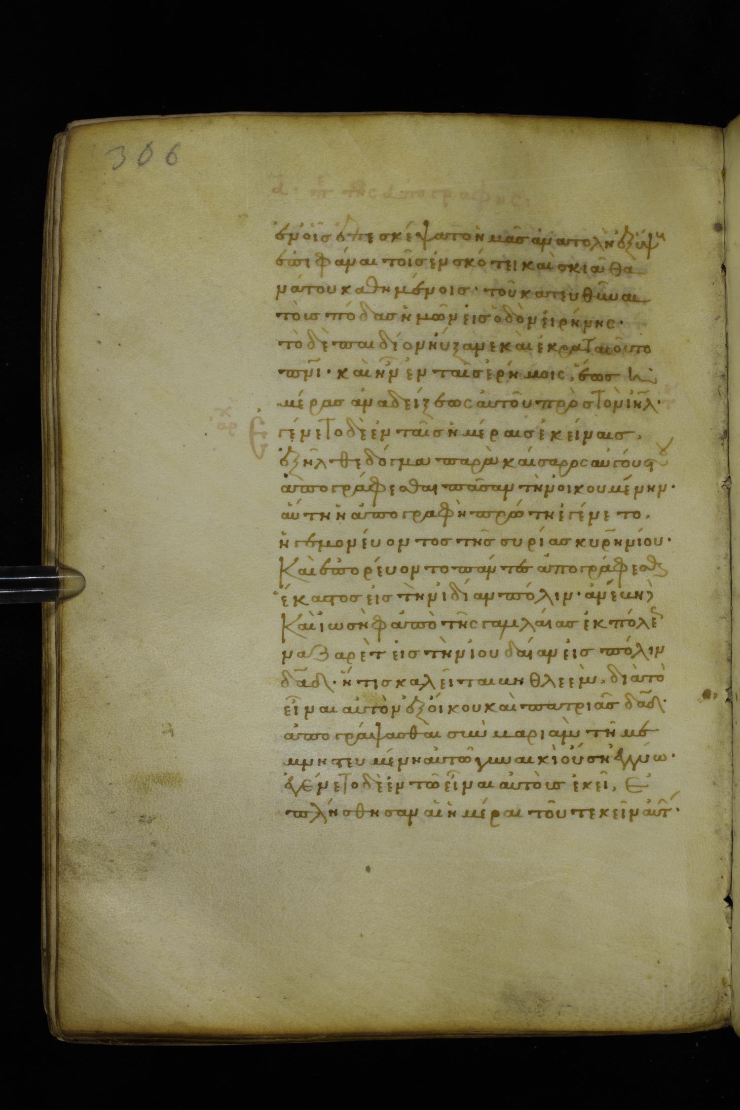 Fourteenth century minuscule of the Gospels on parchment; 282 leaves, 1 column, 22-23 lines per column. Images were taken at the National Library of Greece in Athens.