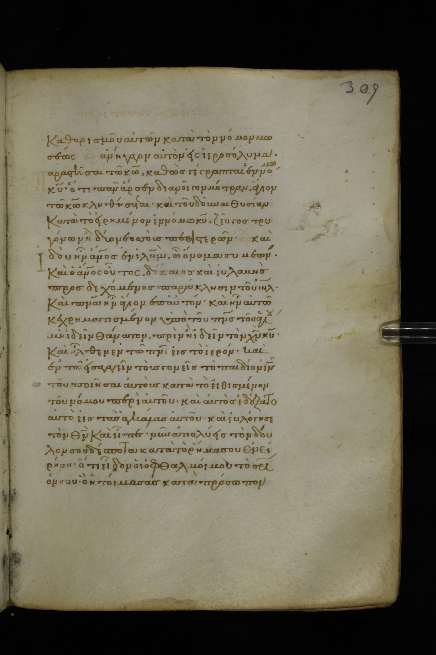Fourteenth century minuscule of the Gospels on parchment; 282 leaves, 1 column, 22-23 lines per column. Images were taken at the National Library of Greece in Athens.