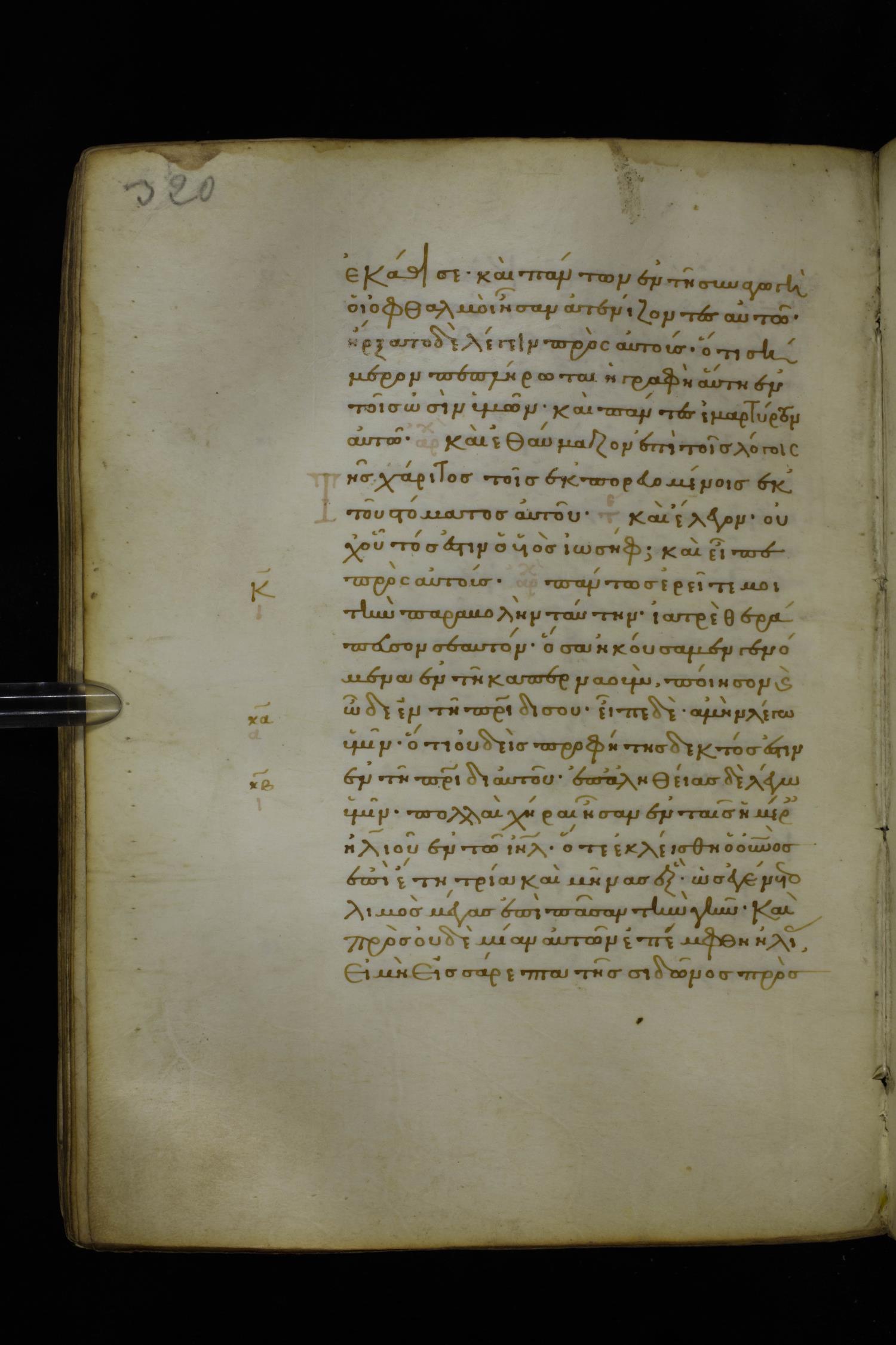 Fourteenth century minuscule of the Gospels on parchment; 282 leaves, 1 column, 22-23 lines per column. Images were taken at the National Library of Greece in Athens.