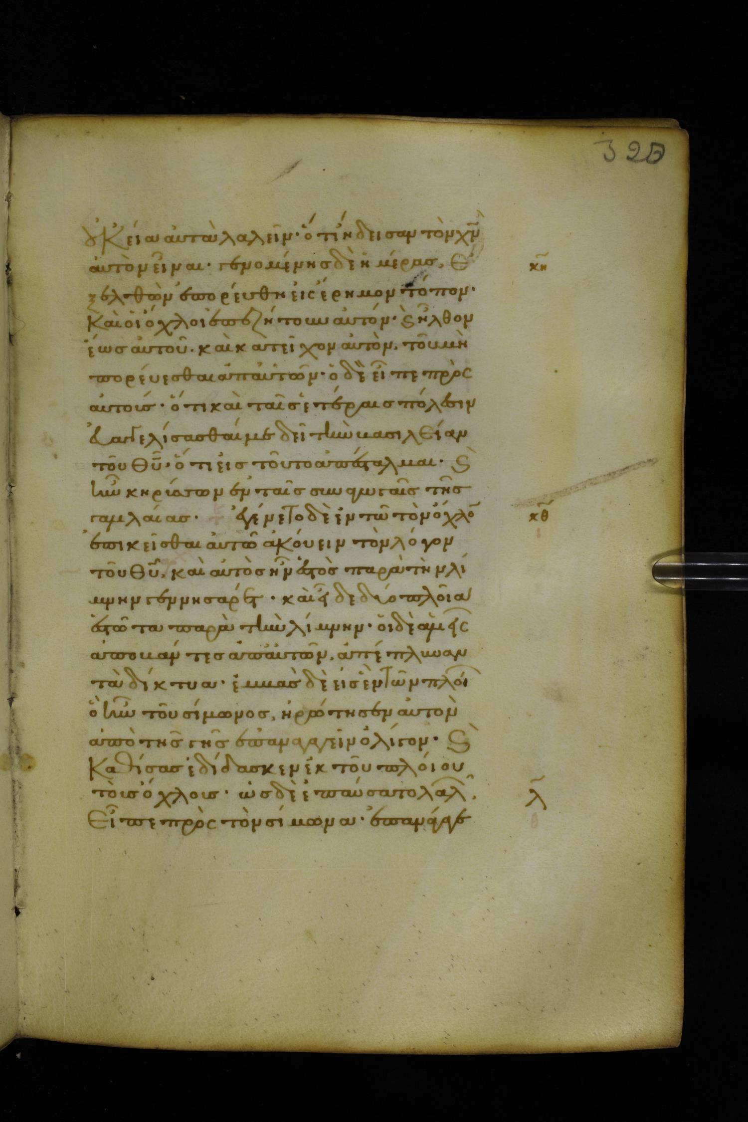 Fourteenth century minuscule of the Gospels on parchment; 282 leaves, 1 column, 22-23 lines per column. Images were taken at the National Library of Greece in Athens.