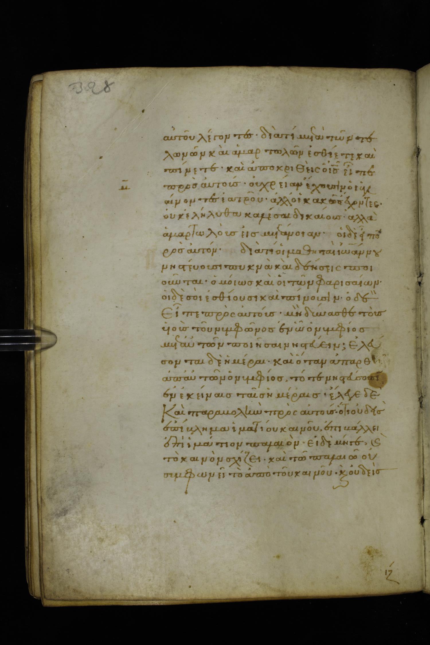 Fourteenth century minuscule of the Gospels on parchment; 282 leaves, 1 column, 22-23 lines per column. Images were taken at the National Library of Greece in Athens.