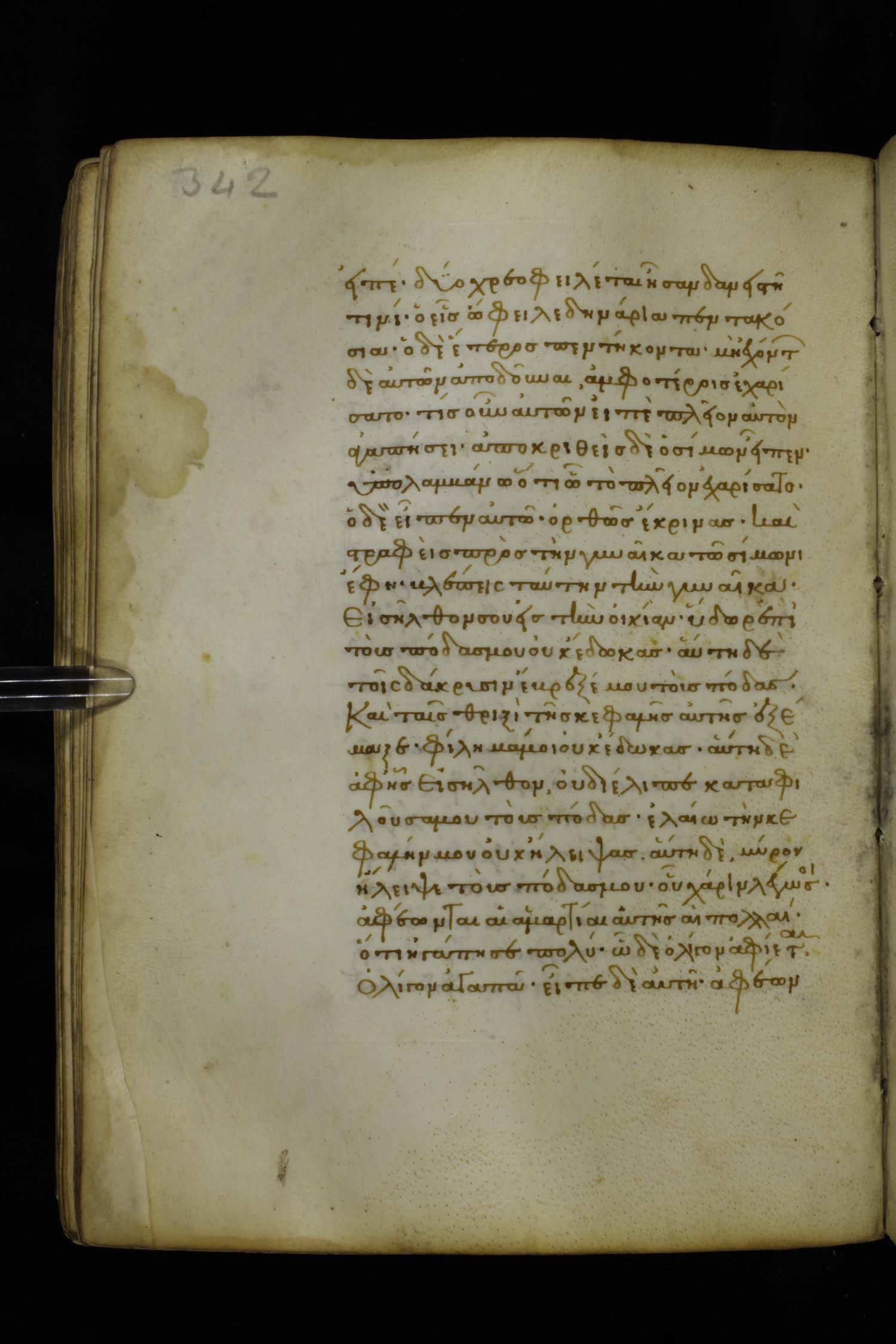 Fourteenth century minuscule of the Gospels on parchment; 282 leaves, 1 column, 22-23 lines per column. Images were taken at the National Library of Greece in Athens.