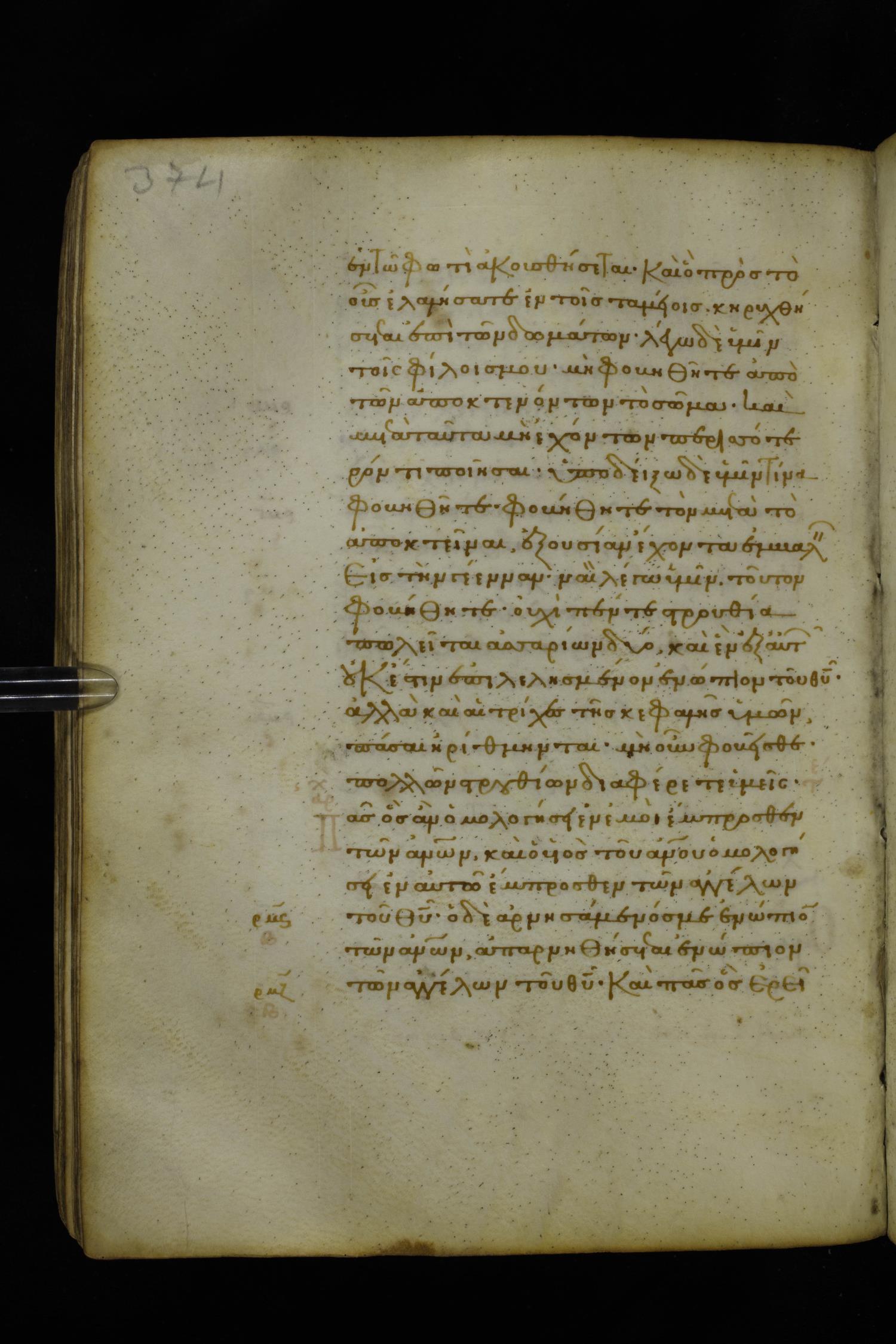 Fourteenth century minuscule of the Gospels on parchment; 282 leaves, 1 column, 22-23 lines per column. Images were taken at the National Library of Greece in Athens.