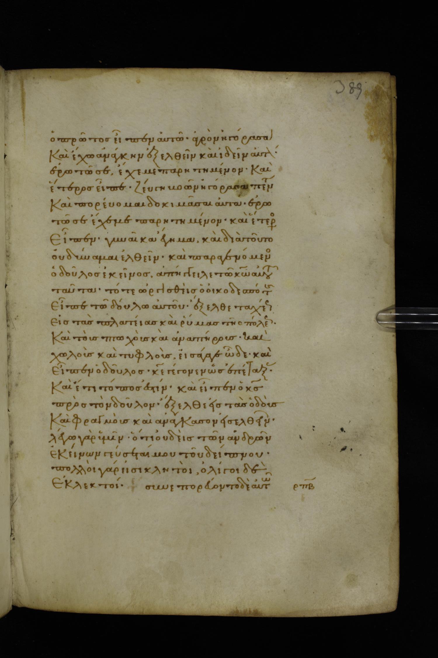 Fourteenth century minuscule of the Gospels on parchment; 282 leaves, 1 column, 22-23 lines per column. Images were taken at the National Library of Greece in Athens.