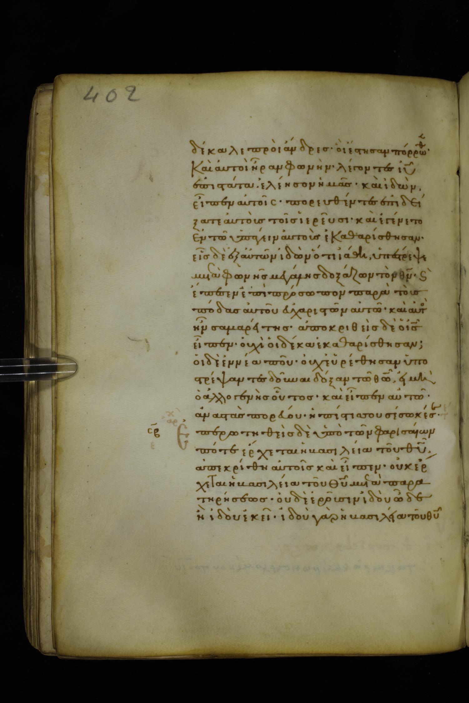 Fourteenth century minuscule of the Gospels on parchment; 282 leaves, 1 column, 22-23 lines per column. Images were taken at the National Library of Greece in Athens.