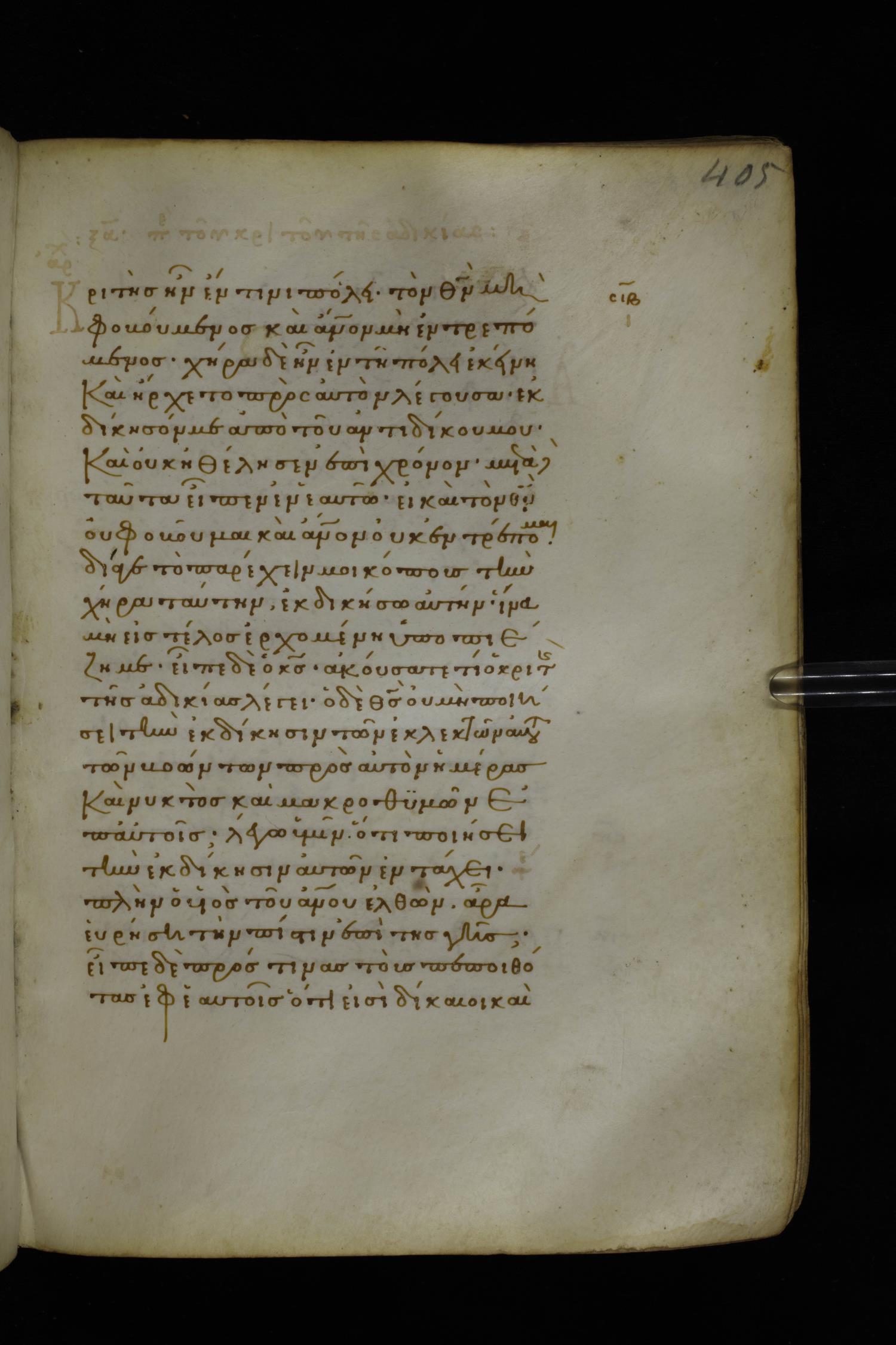 Fourteenth century minuscule of the Gospels on parchment; 282 leaves, 1 column, 22-23 lines per column. Images were taken at the National Library of Greece in Athens.