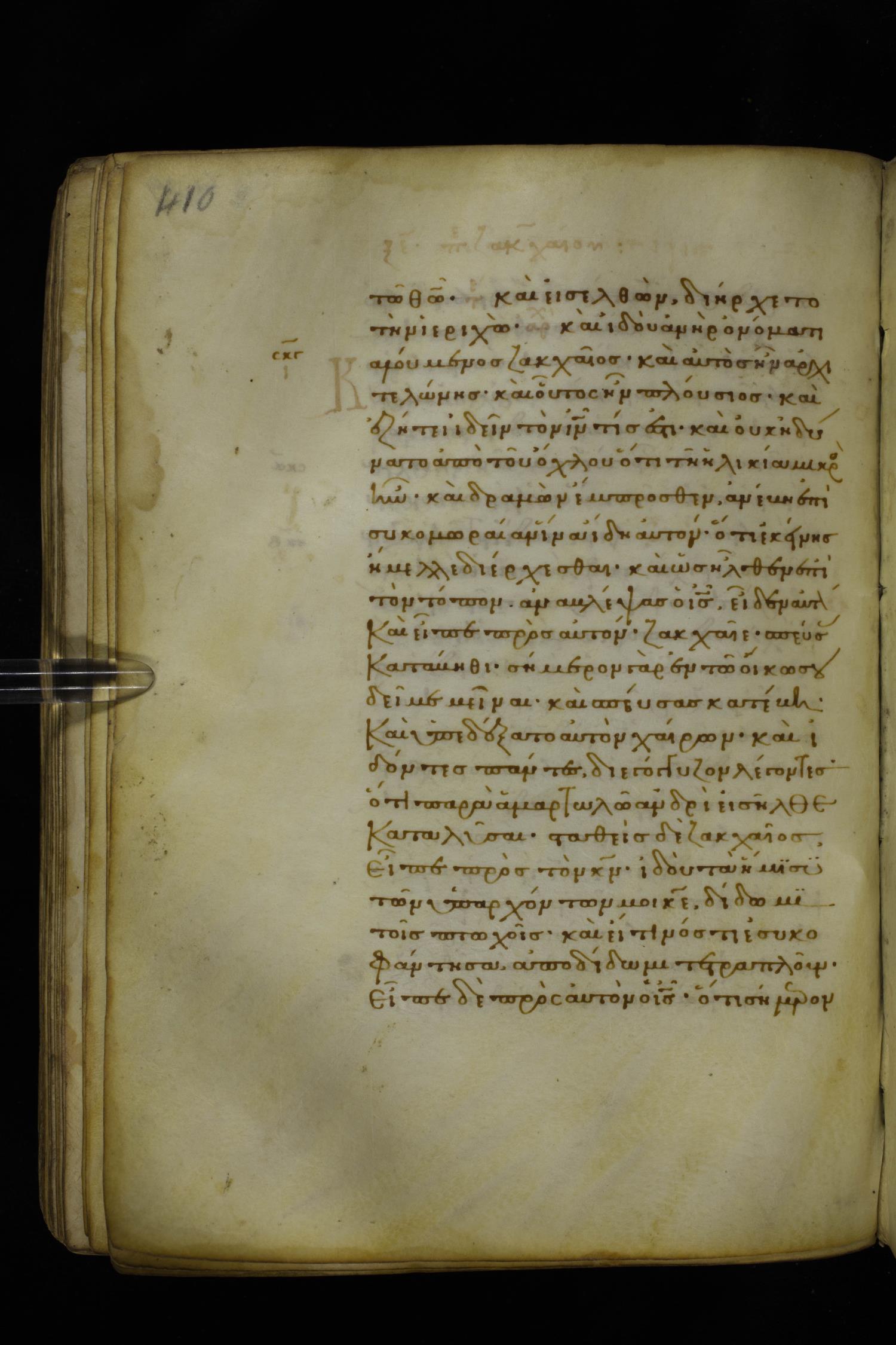 Fourteenth century minuscule of the Gospels on parchment; 282 leaves, 1 column, 22-23 lines per column. Images were taken at the National Library of Greece in Athens.