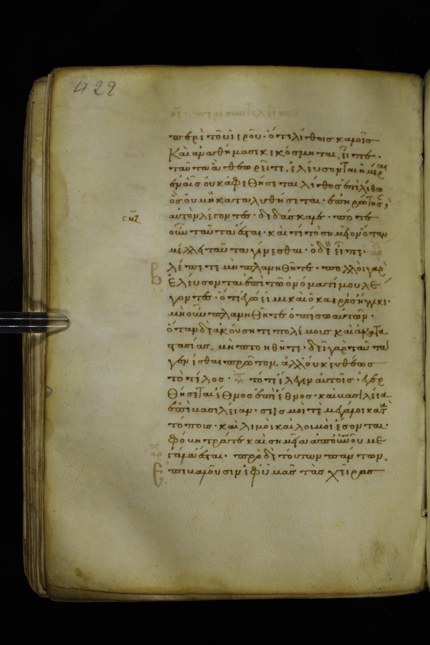 Fourteenth century minuscule of the Gospels on parchment; 282 leaves, 1 column, 22-23 lines per column. Images were taken at the National Library of Greece in Athens.