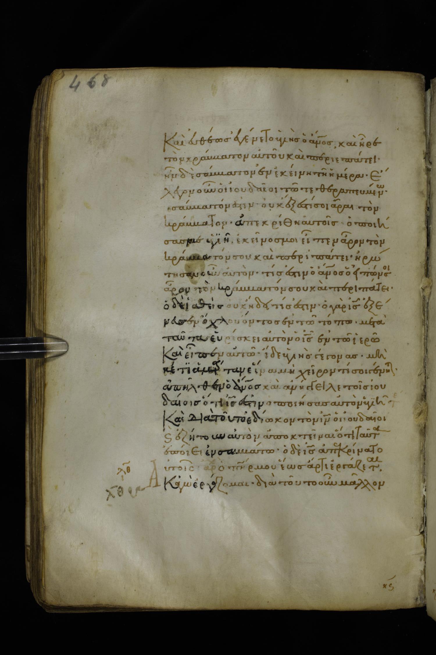 Fourteenth century minuscule of the Gospels on parchment; 282 leaves, 1 column, 22-23 lines per column. Images were taken at the National Library of Greece in Athens.