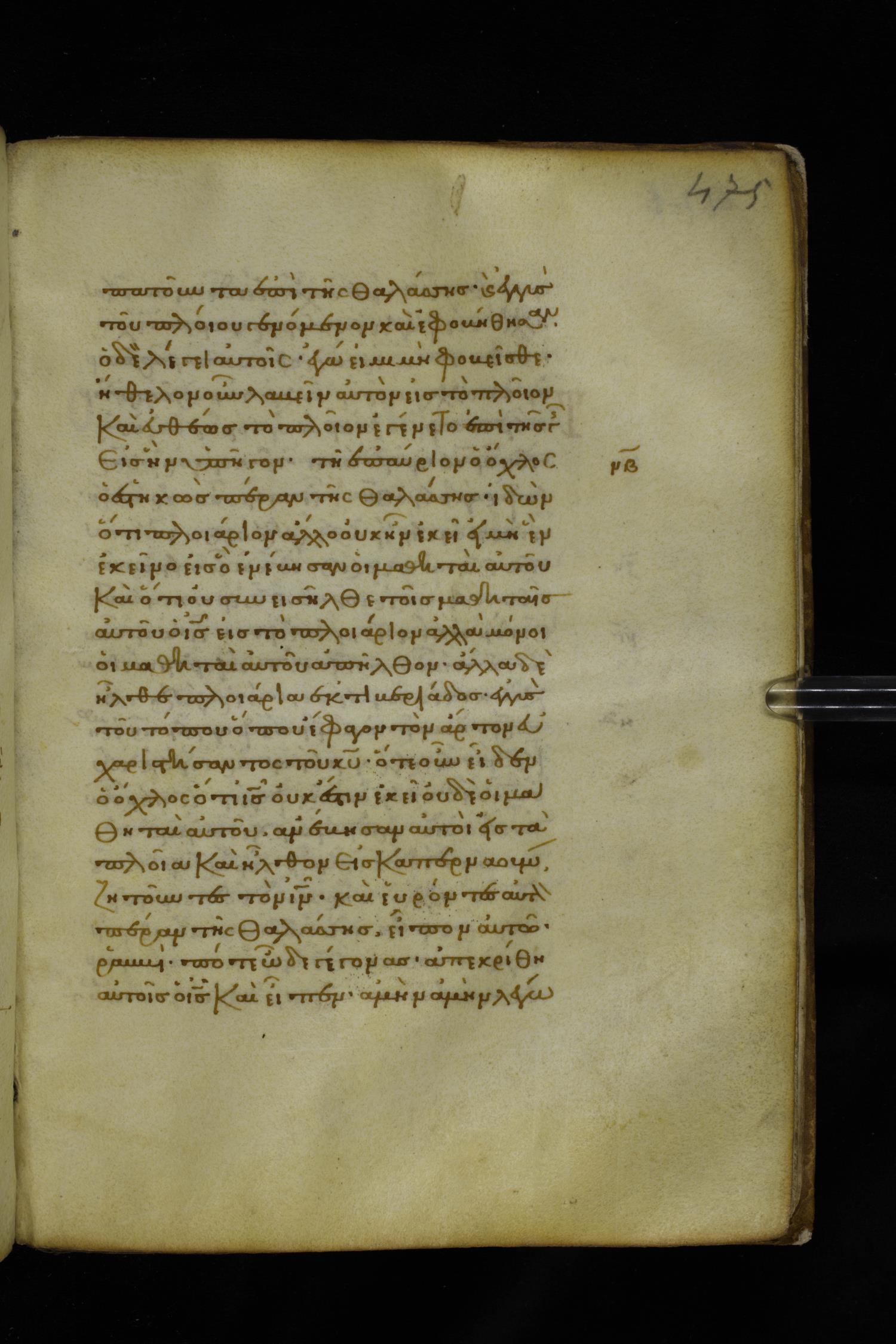 Fourteenth century minuscule of the Gospels on parchment; 282 leaves, 1 column, 22-23 lines per column. Images were taken at the National Library of Greece in Athens.