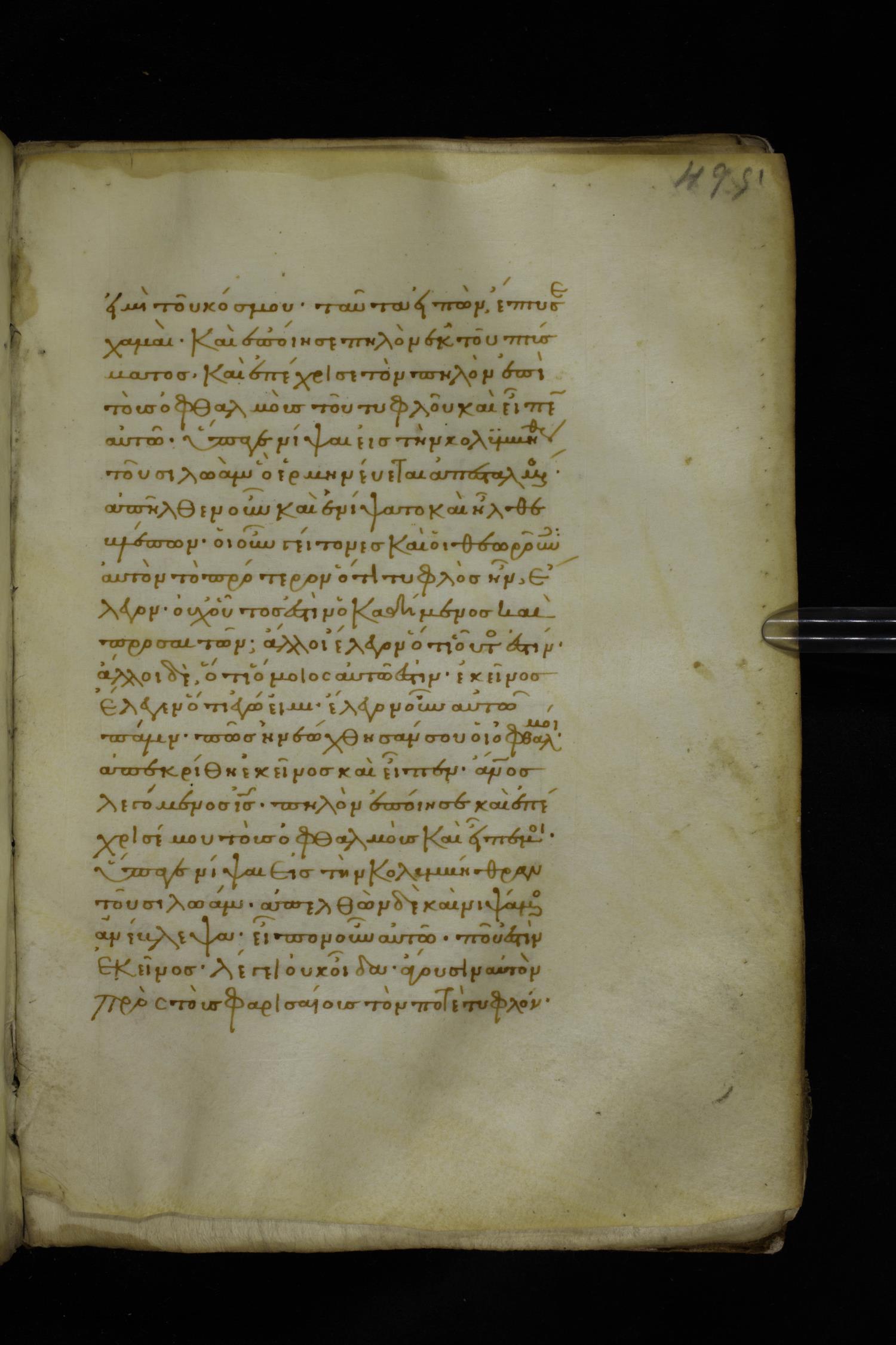 Fourteenth century minuscule of the Gospels on parchment; 282 leaves, 1 column, 22-23 lines per column. Images were taken at the National Library of Greece in Athens.