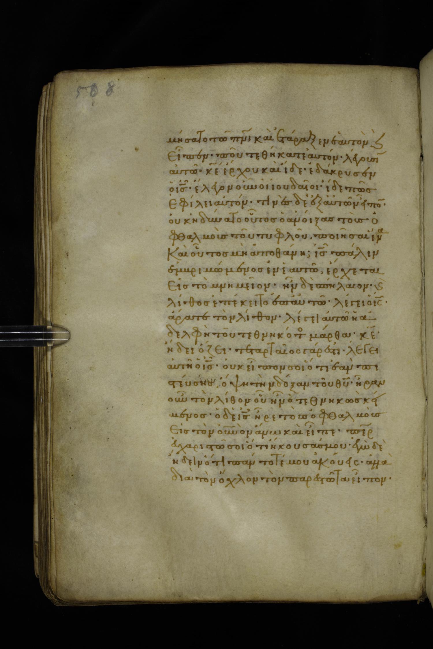 Fourteenth century minuscule of the Gospels on parchment; 282 leaves, 1 column, 22-23 lines per column. Images were taken at the National Library of Greece in Athens.