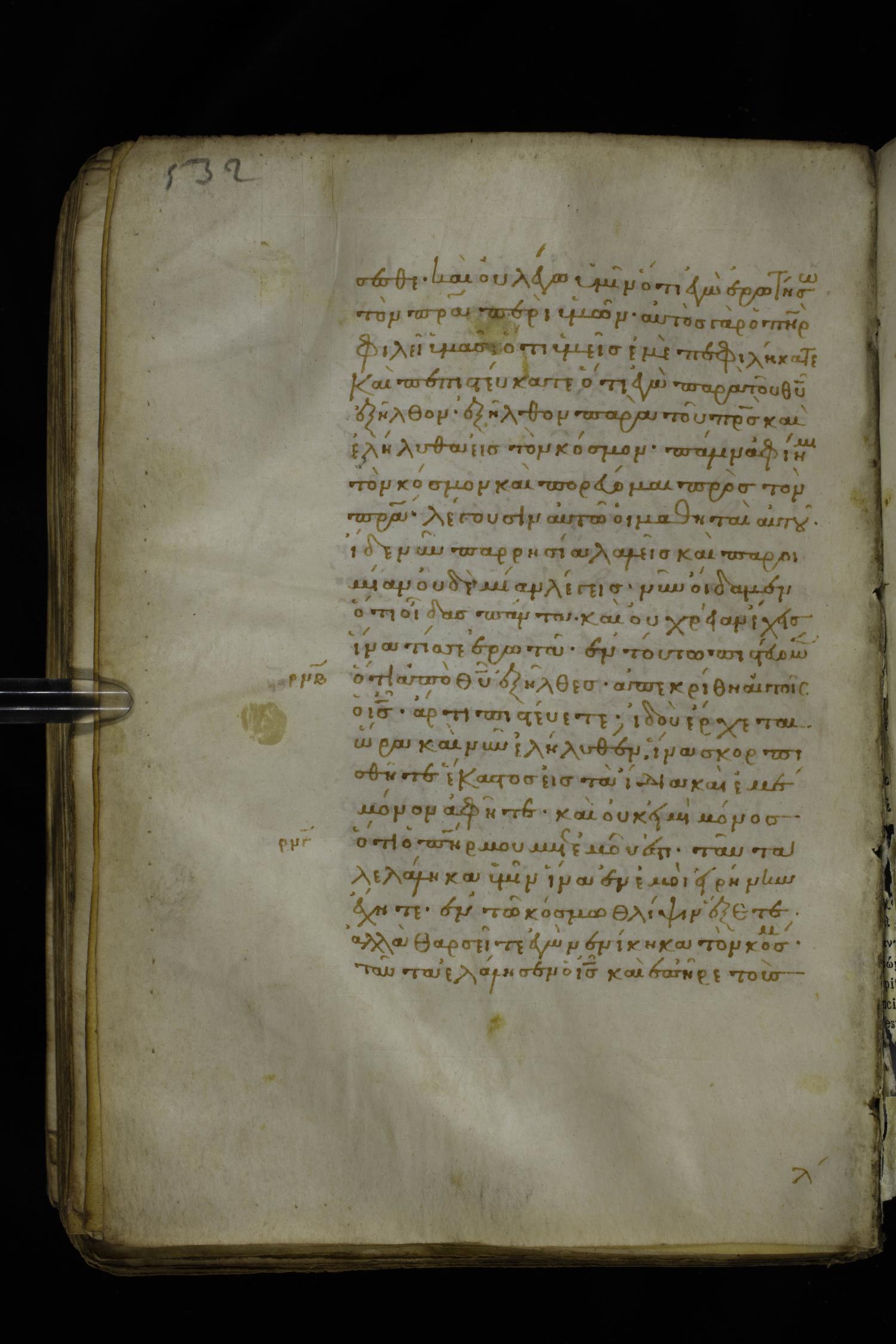 Fourteenth century minuscule of the Gospels on parchment; 282 leaves, 1 column, 22-23 lines per column. Images were taken at the National Library of Greece in Athens.