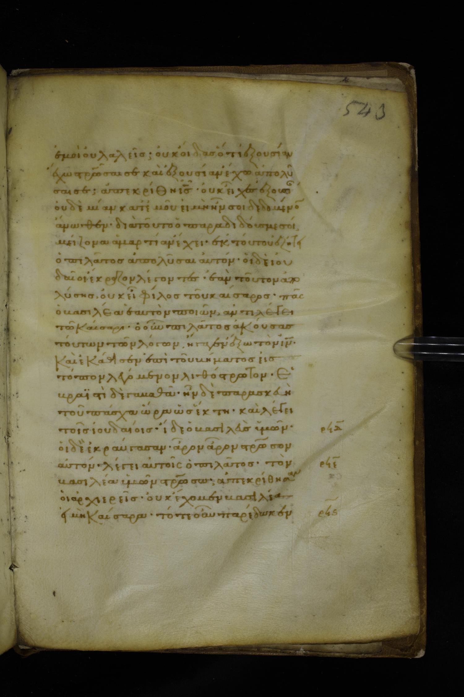 Fourteenth century minuscule of the Gospels on parchment; 282 leaves, 1 column, 22-23 lines per column. Images were taken at the National Library of Greece in Athens.