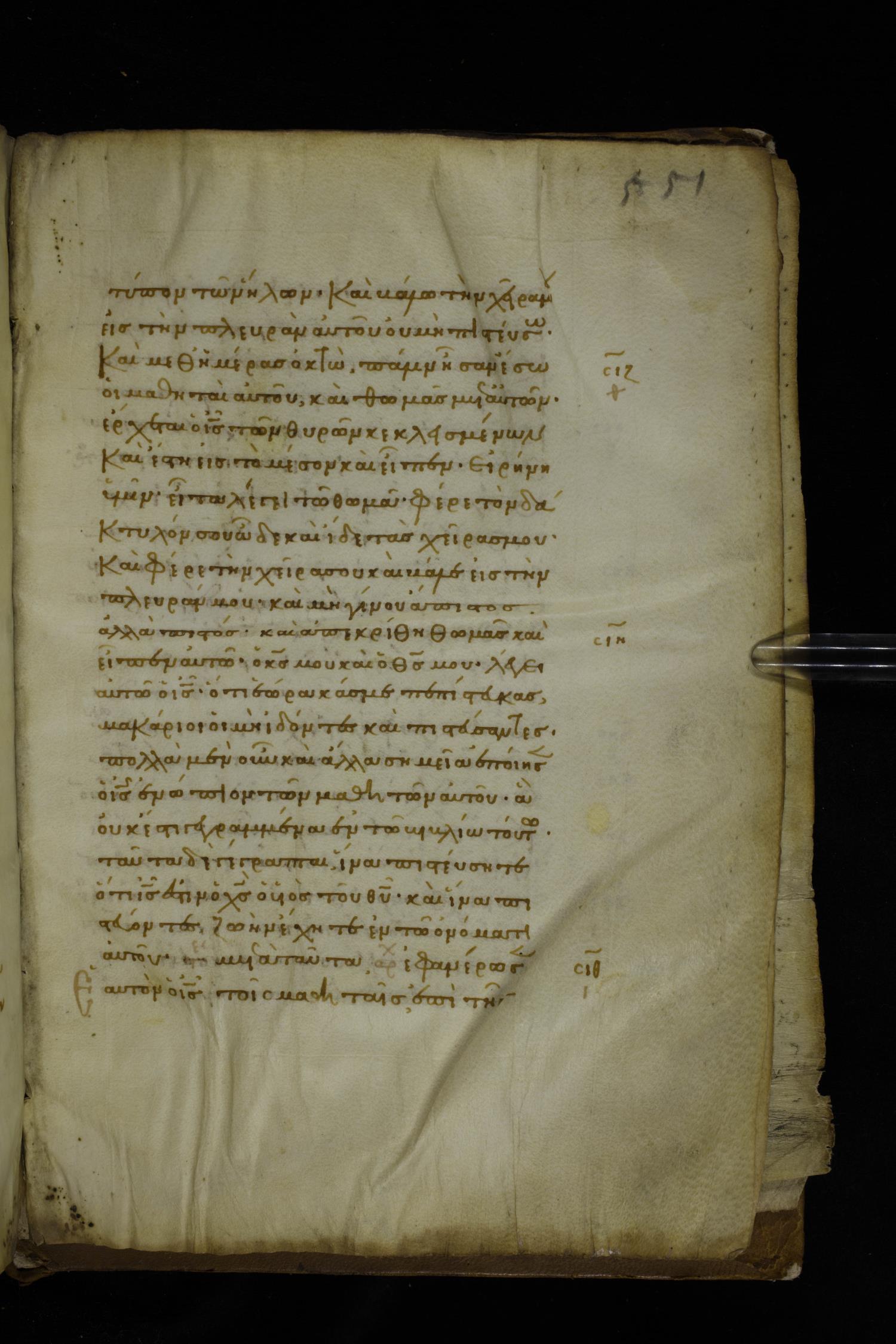 Fourteenth century minuscule of the Gospels on parchment; 282 leaves, 1 column, 22-23 lines per column. Images were taken at the National Library of Greece in Athens.