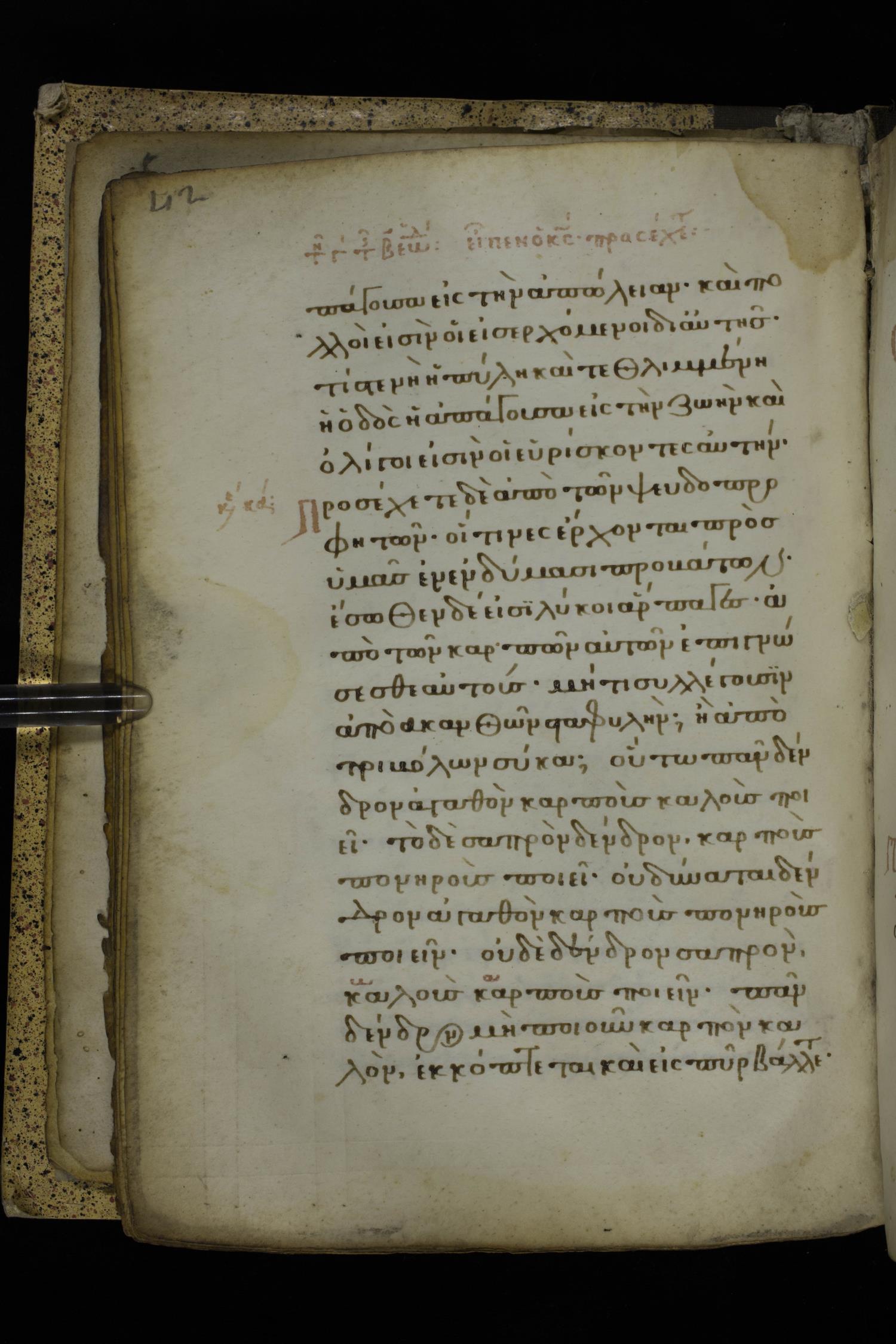 Fourteenth century minuscule of the Gospels on parchment; 332 leaves, 1 column, 21 lines per column. Images were taken at the National Library of Greece in Athens.