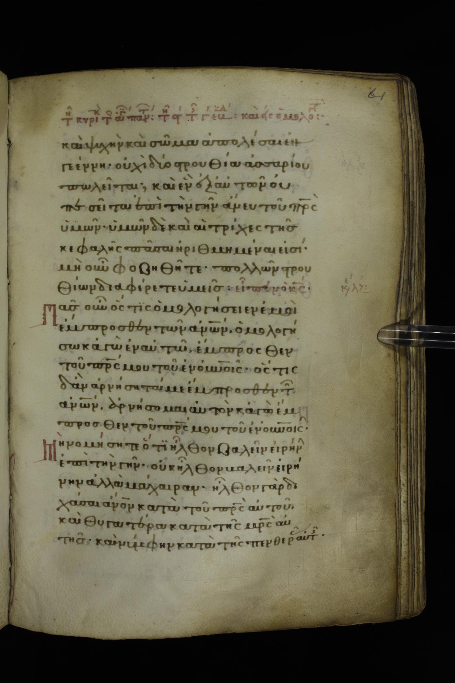 Fourteenth century minuscule of the Gospels on parchment; 332 leaves, 1 column, 21 lines per column. Images were taken at the National Library of Greece in Athens.
