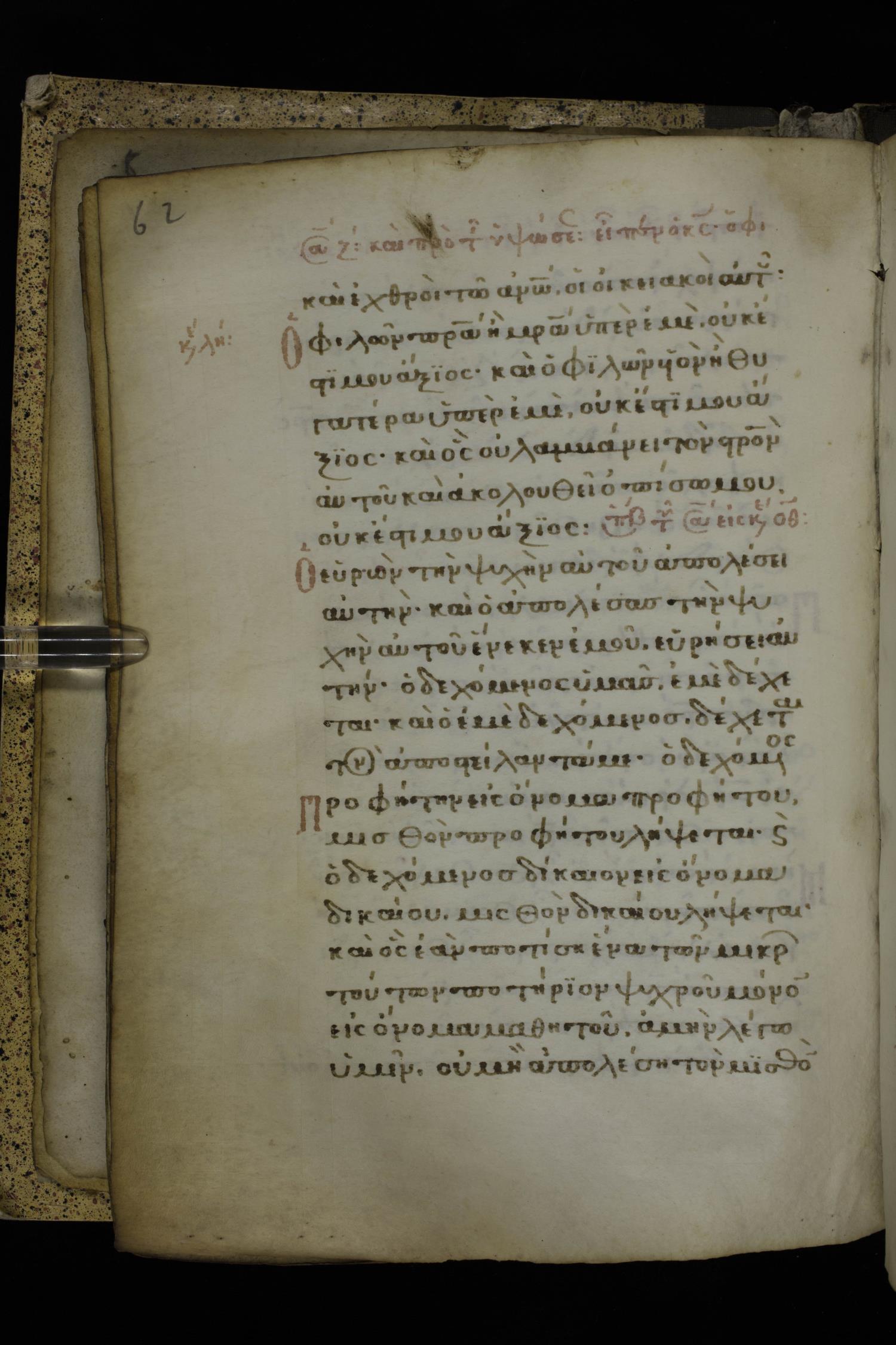 Fourteenth century minuscule of the Gospels on parchment; 332 leaves, 1 column, 21 lines per column. Images were taken at the National Library of Greece in Athens.