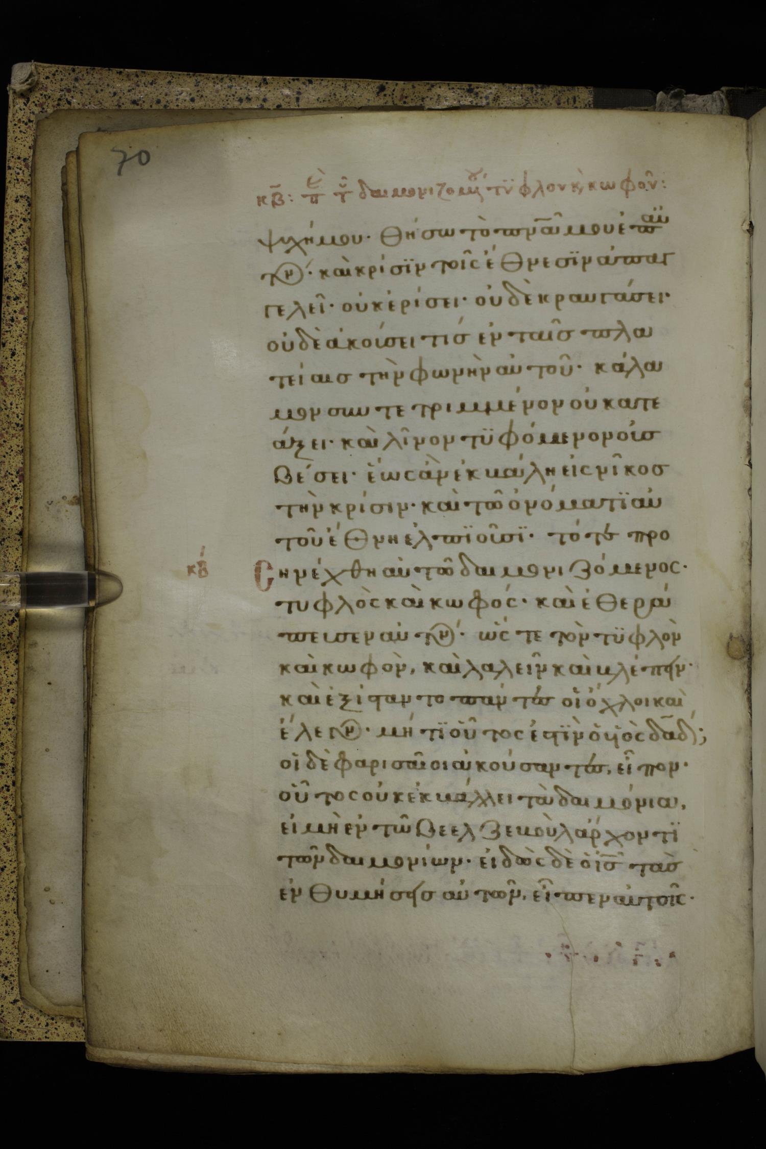 Fourteenth century minuscule of the Gospels on parchment; 332 leaves, 1 column, 21 lines per column. Images were taken at the National Library of Greece in Athens.