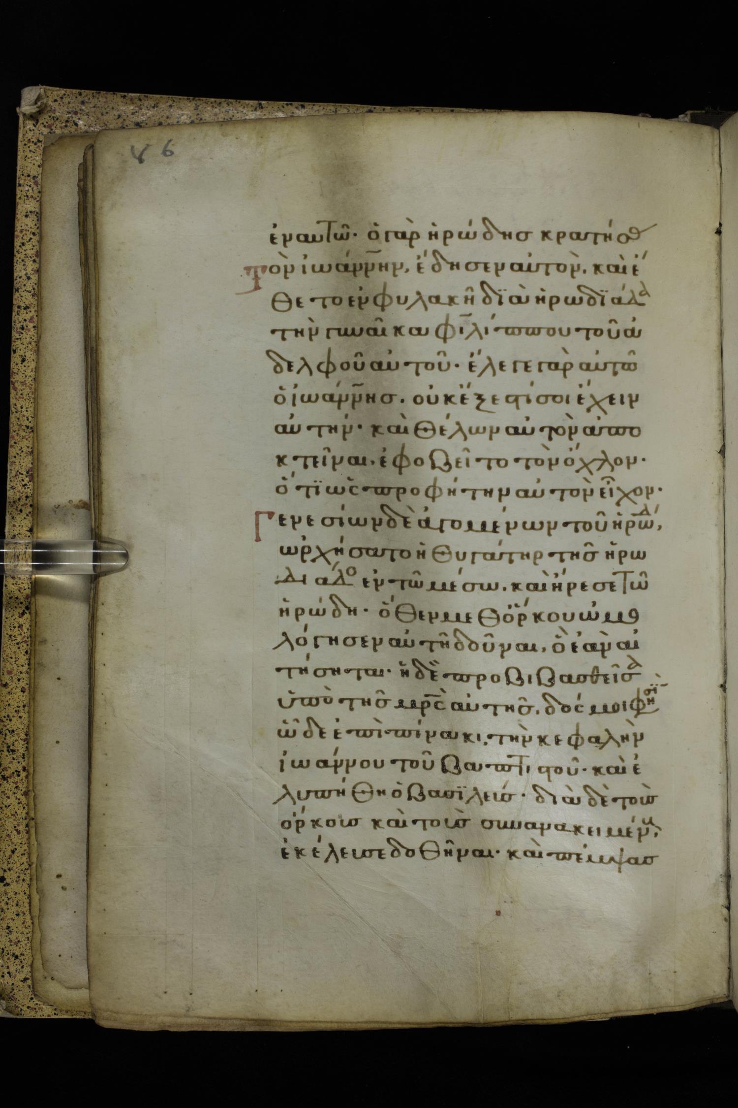 Fourteenth century minuscule of the Gospels on parchment; 332 leaves, 1 column, 21 lines per column. Images were taken at the National Library of Greece in Athens.