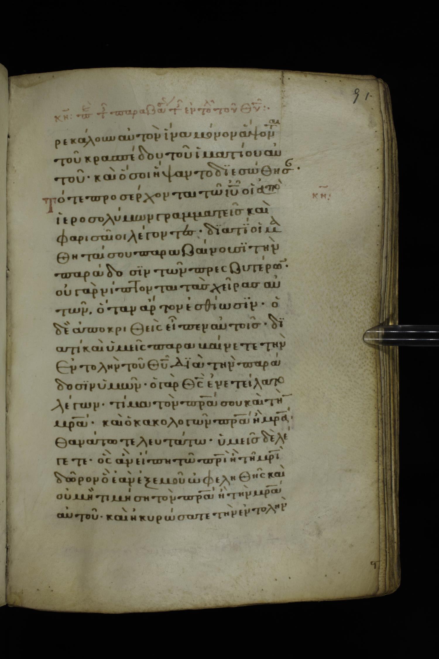 Fourteenth century minuscule of the Gospels on parchment; 332 leaves, 1 column, 21 lines per column. Images were taken at the National Library of Greece in Athens.