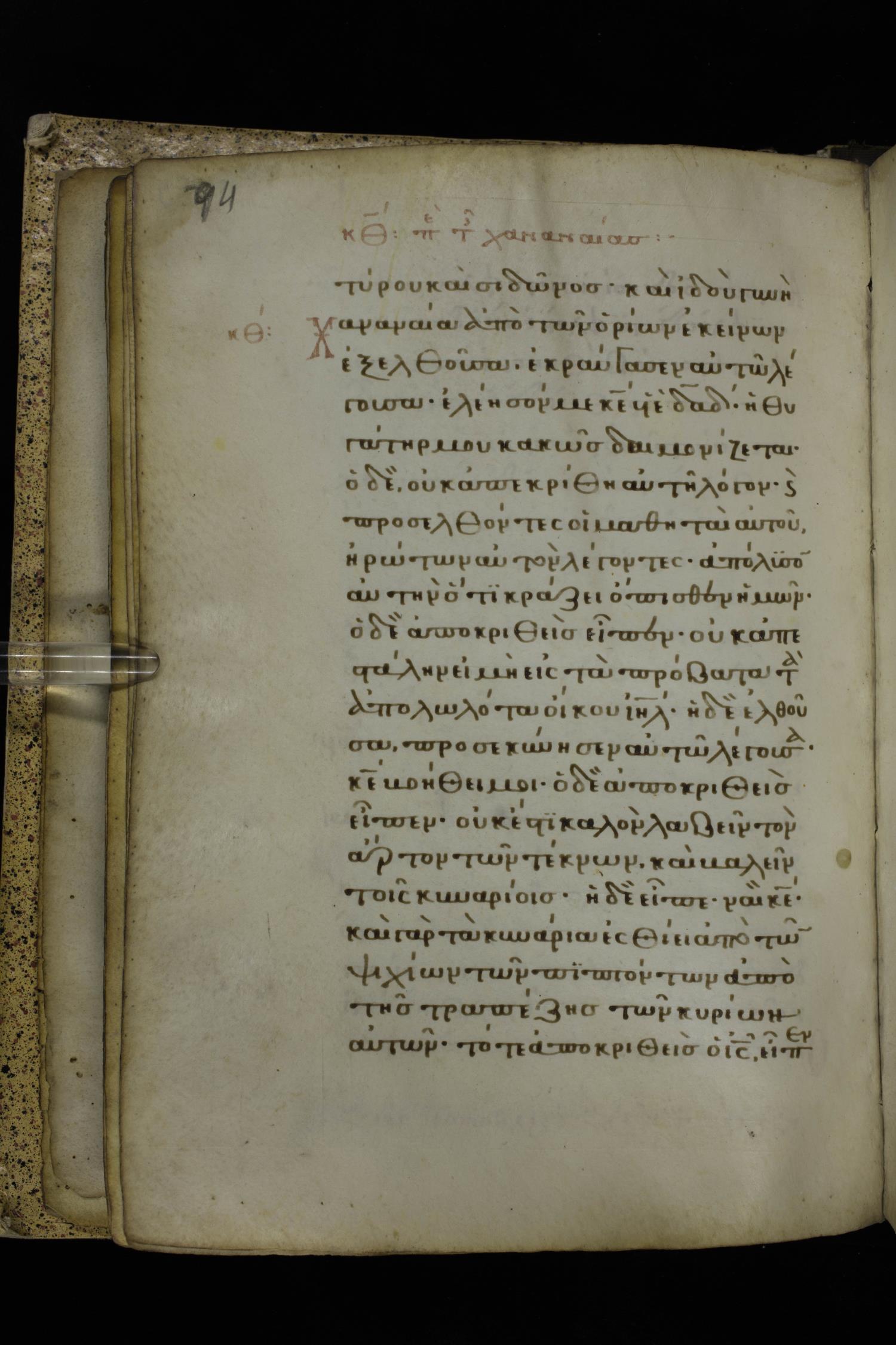 Fourteenth century minuscule of the Gospels on parchment; 332 leaves, 1 column, 21 lines per column. Images were taken at the National Library of Greece in Athens.