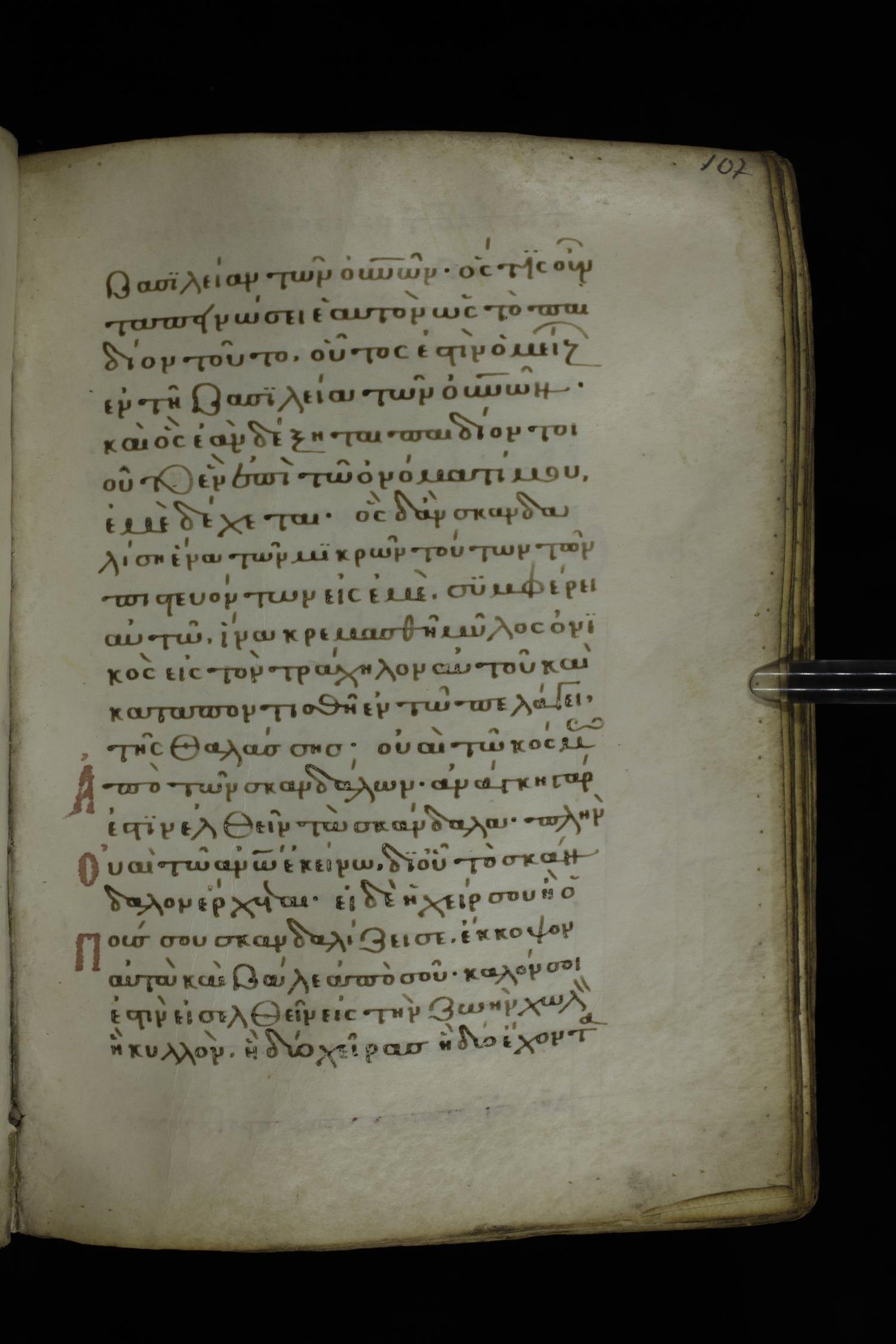 Fourteenth century minuscule of the Gospels on parchment; 332 leaves, 1 column, 21 lines per column. Images were taken at the National Library of Greece in Athens.