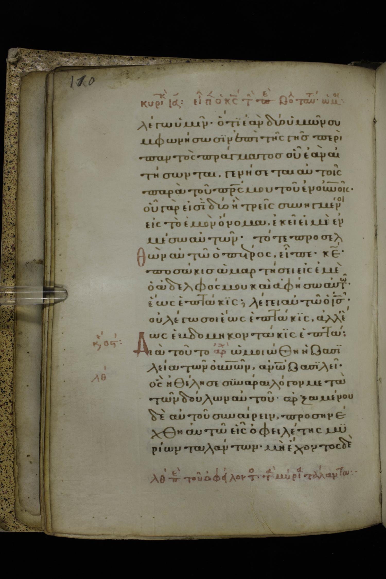 Fourteenth century minuscule of the Gospels on parchment; 332 leaves, 1 column, 21 lines per column. Images were taken at the National Library of Greece in Athens.