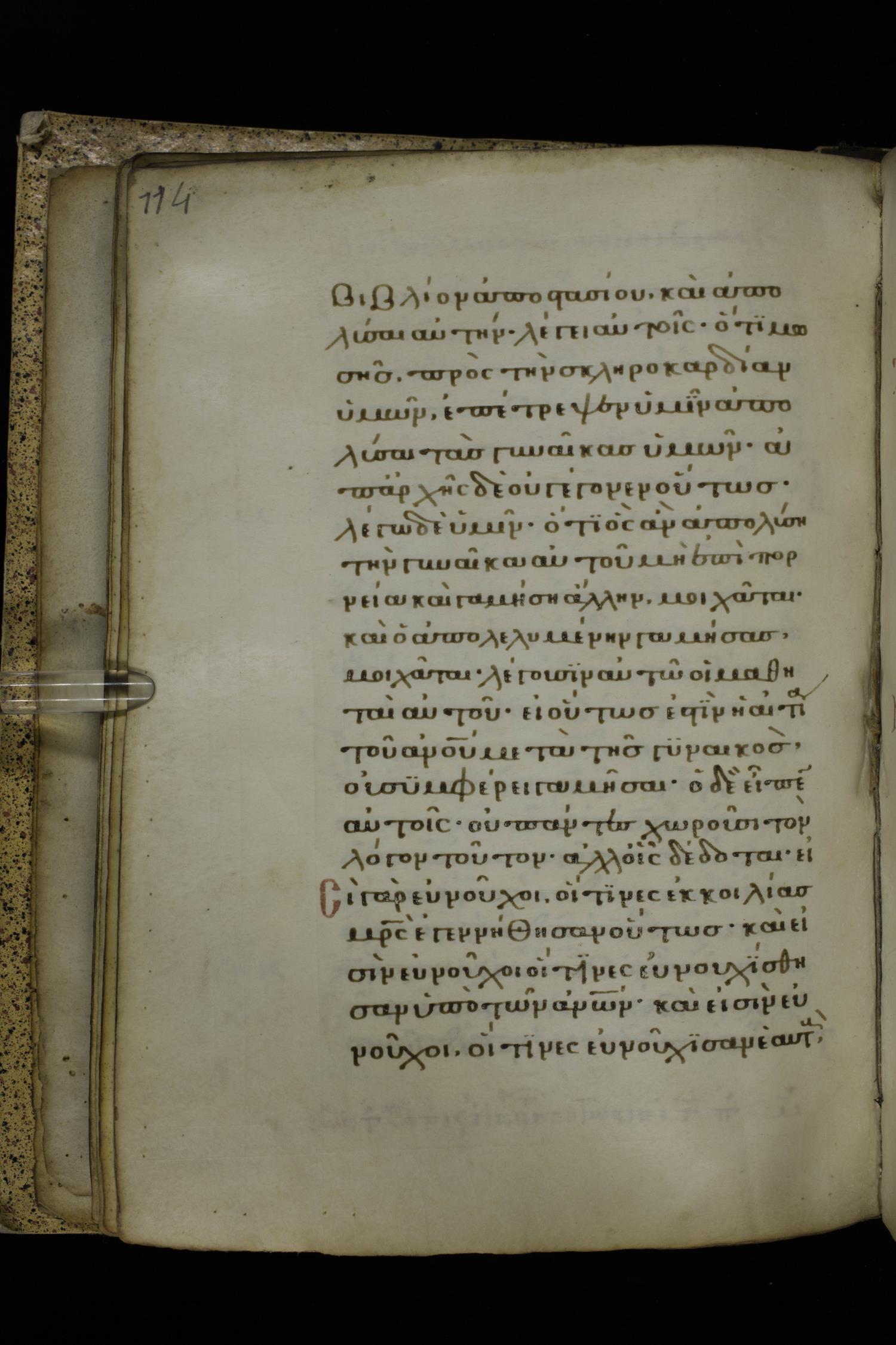 Fourteenth century minuscule of the Gospels on parchment; 332 leaves, 1 column, 21 lines per column. Images were taken at the National Library of Greece in Athens.