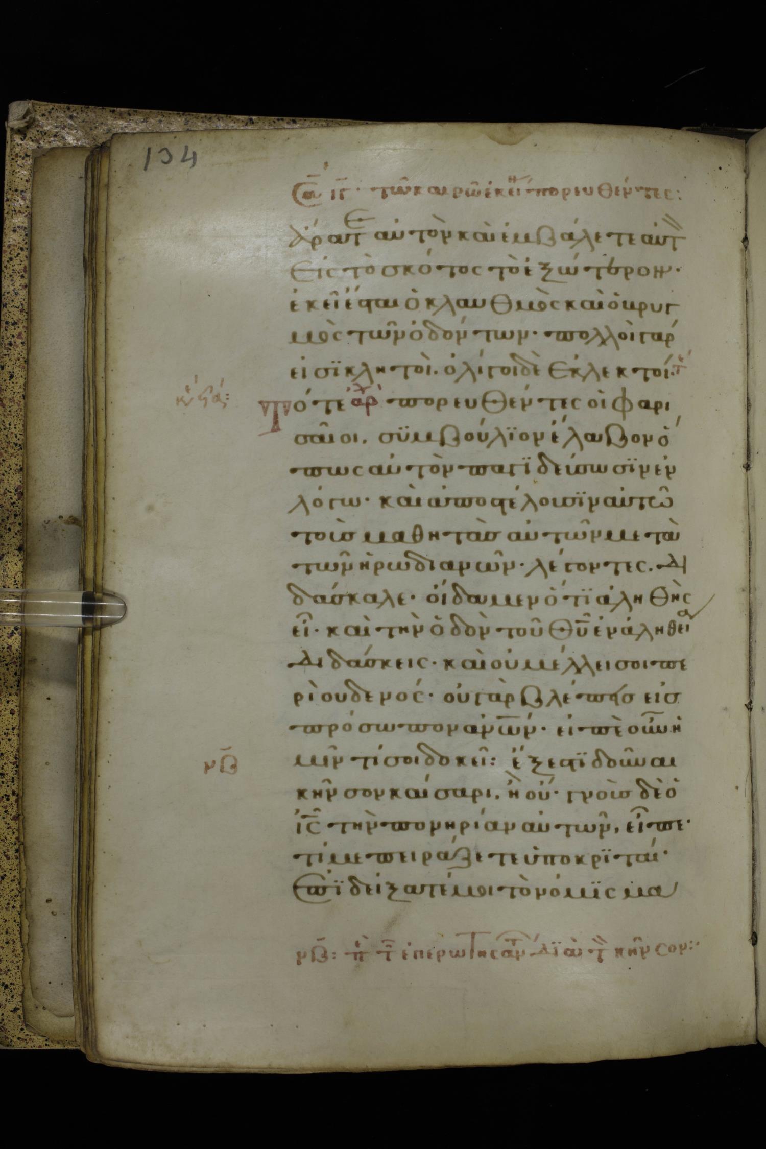Fourteenth century minuscule of the Gospels on parchment; 332 leaves, 1 column, 21 lines per column. Images were taken at the National Library of Greece in Athens.