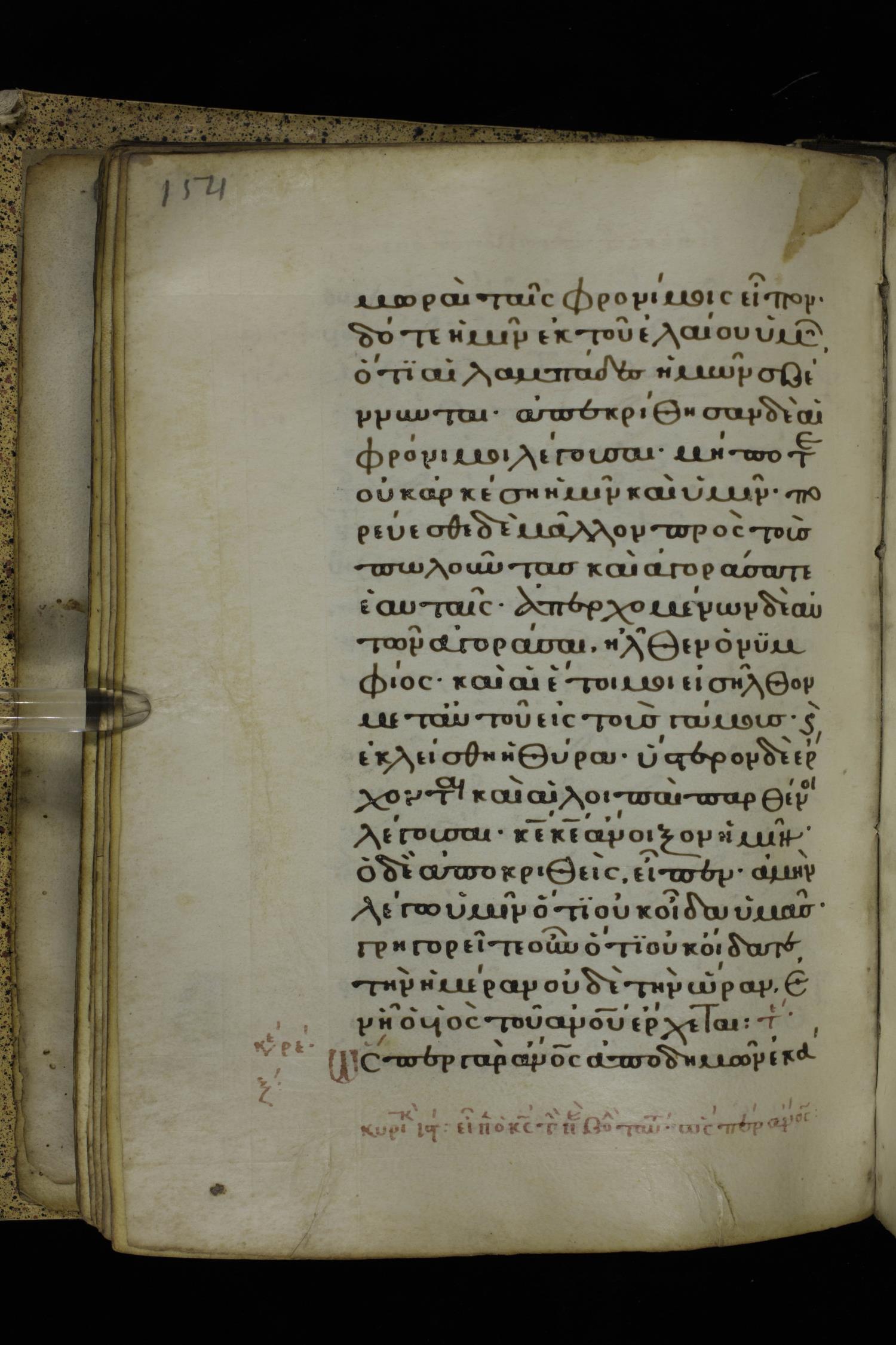 Fourteenth century minuscule of the Gospels on parchment; 332 leaves, 1 column, 21 lines per column. Images were taken at the National Library of Greece in Athens.