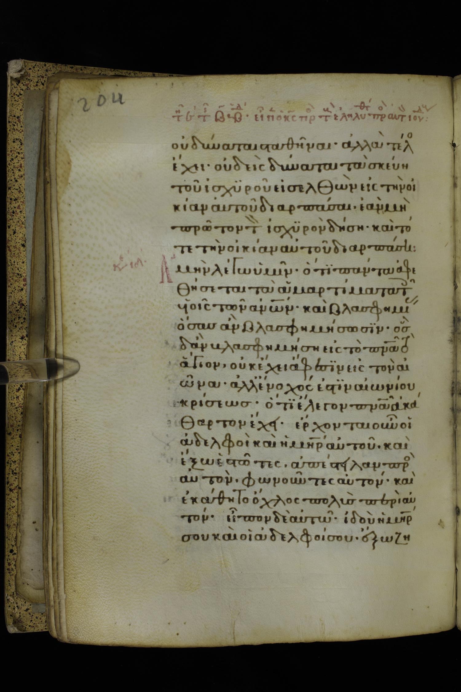 Fourteenth century minuscule of the Gospels on parchment; 332 leaves, 1 column, 21 lines per column. Images were taken at the National Library of Greece in Athens.