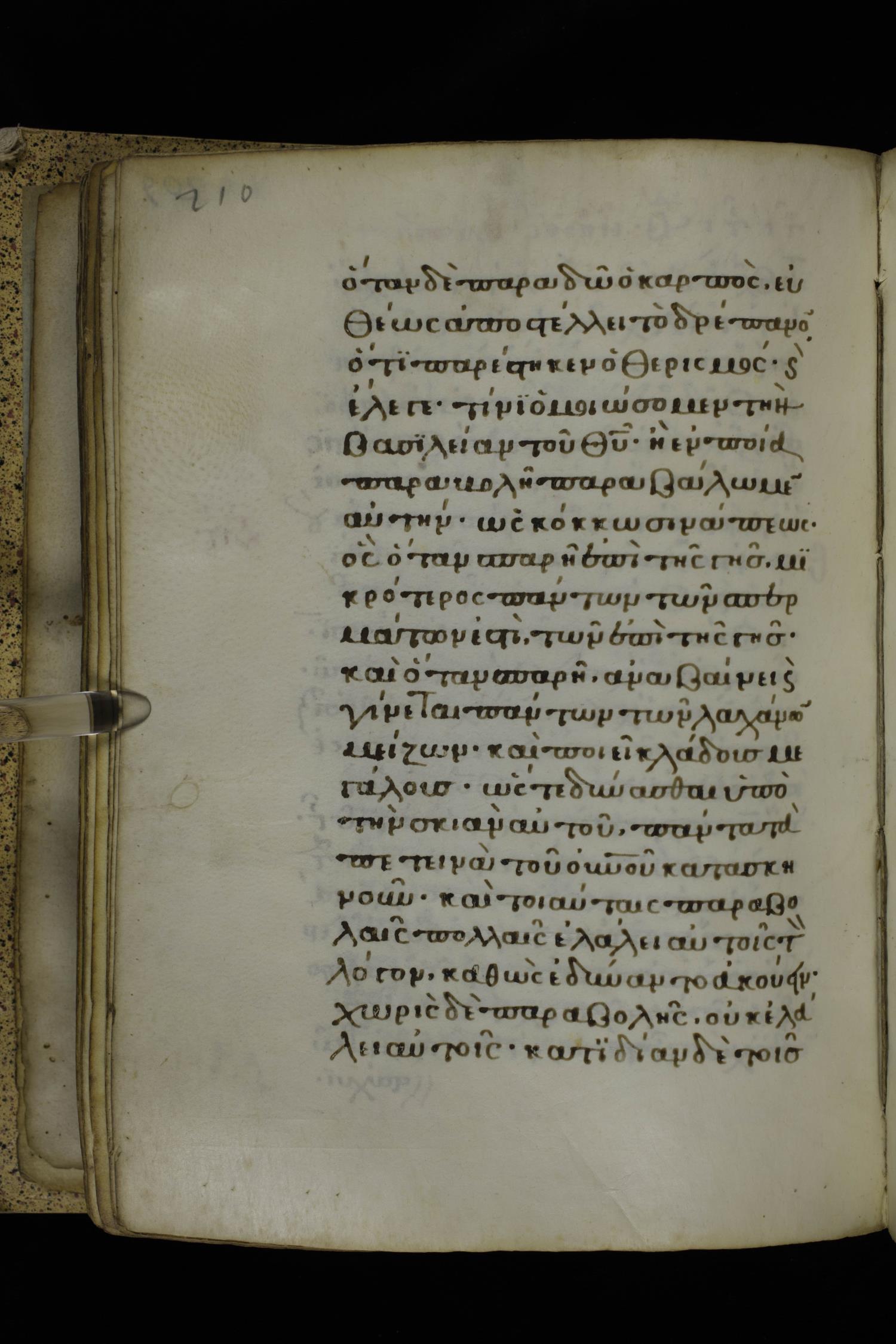 Fourteenth century minuscule of the Gospels on parchment; 332 leaves, 1 column, 21 lines per column. Images were taken at the National Library of Greece in Athens.