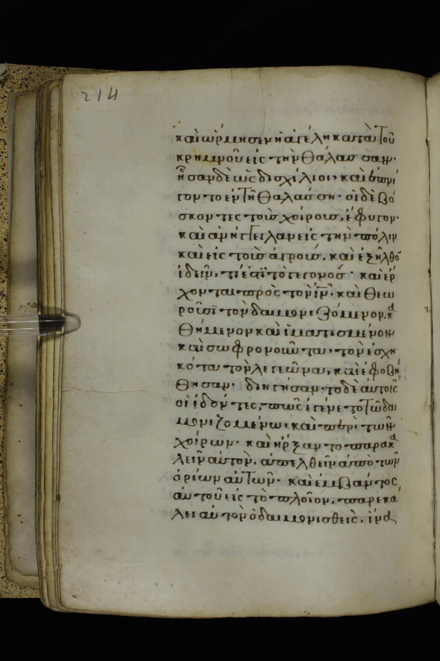 Fourteenth century minuscule of the Gospels on parchment; 332 leaves, 1 column, 21 lines per column. Images were taken at the National Library of Greece in Athens.