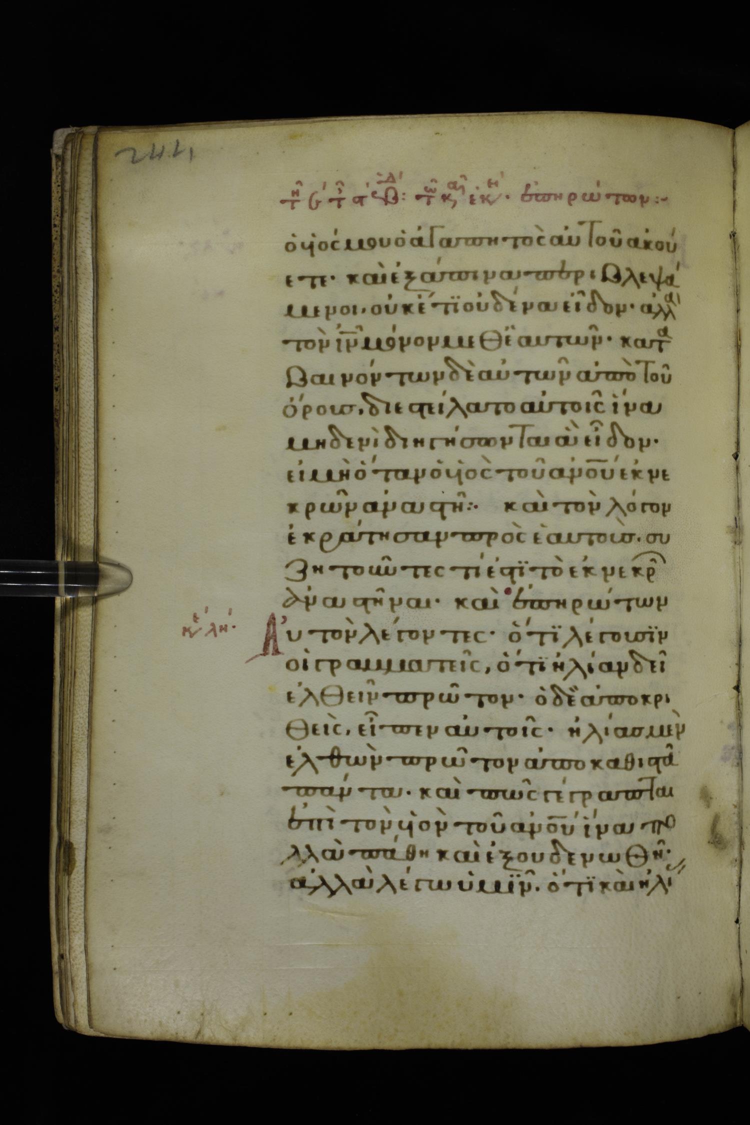 Fourteenth century minuscule of the Gospels on parchment; 332 leaves, 1 column, 21 lines per column. Images were taken at the National Library of Greece in Athens.