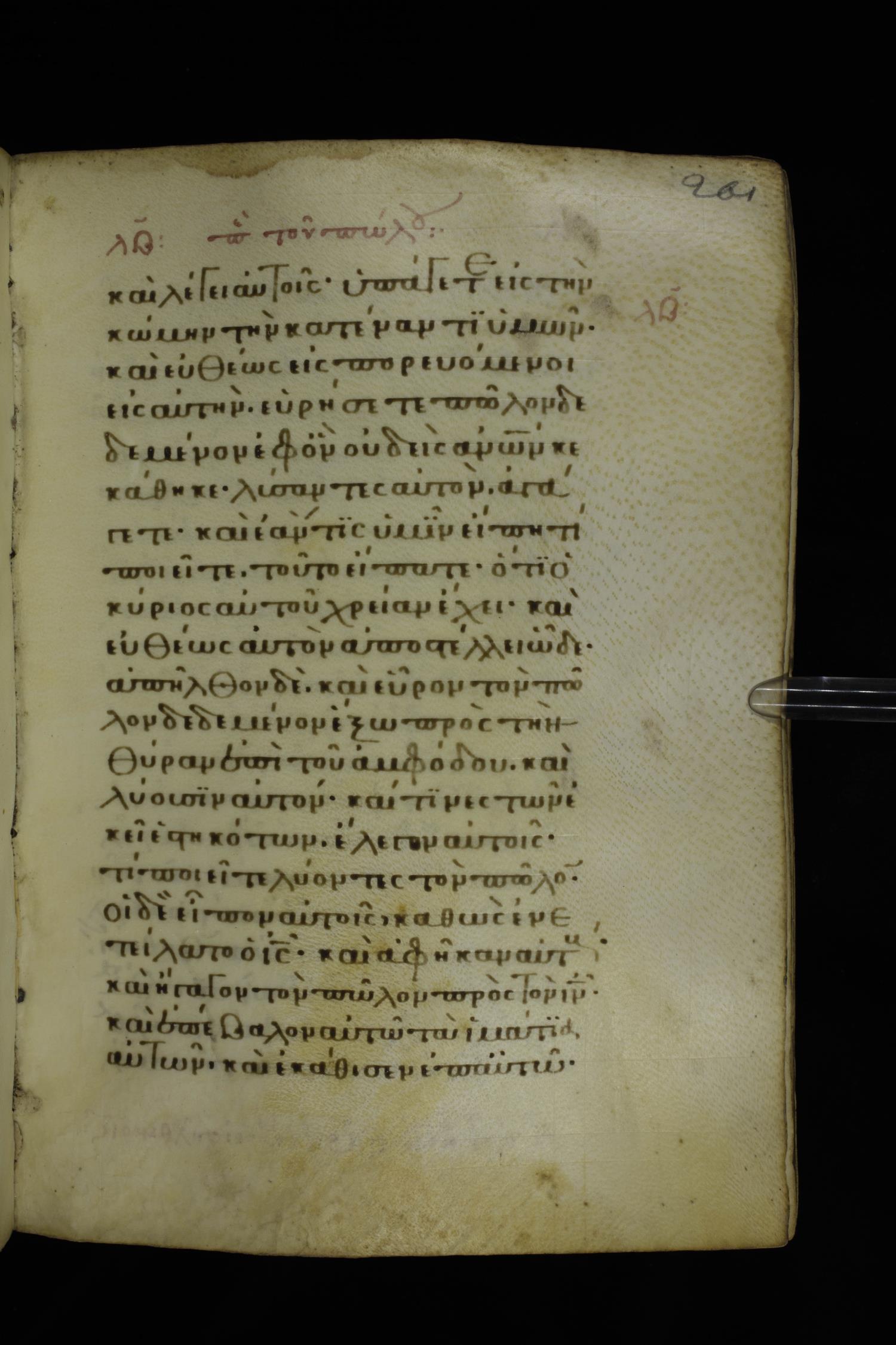 Fourteenth century minuscule of the Gospels on parchment; 332 leaves, 1 column, 21 lines per column. Images were taken at the National Library of Greece in Athens.