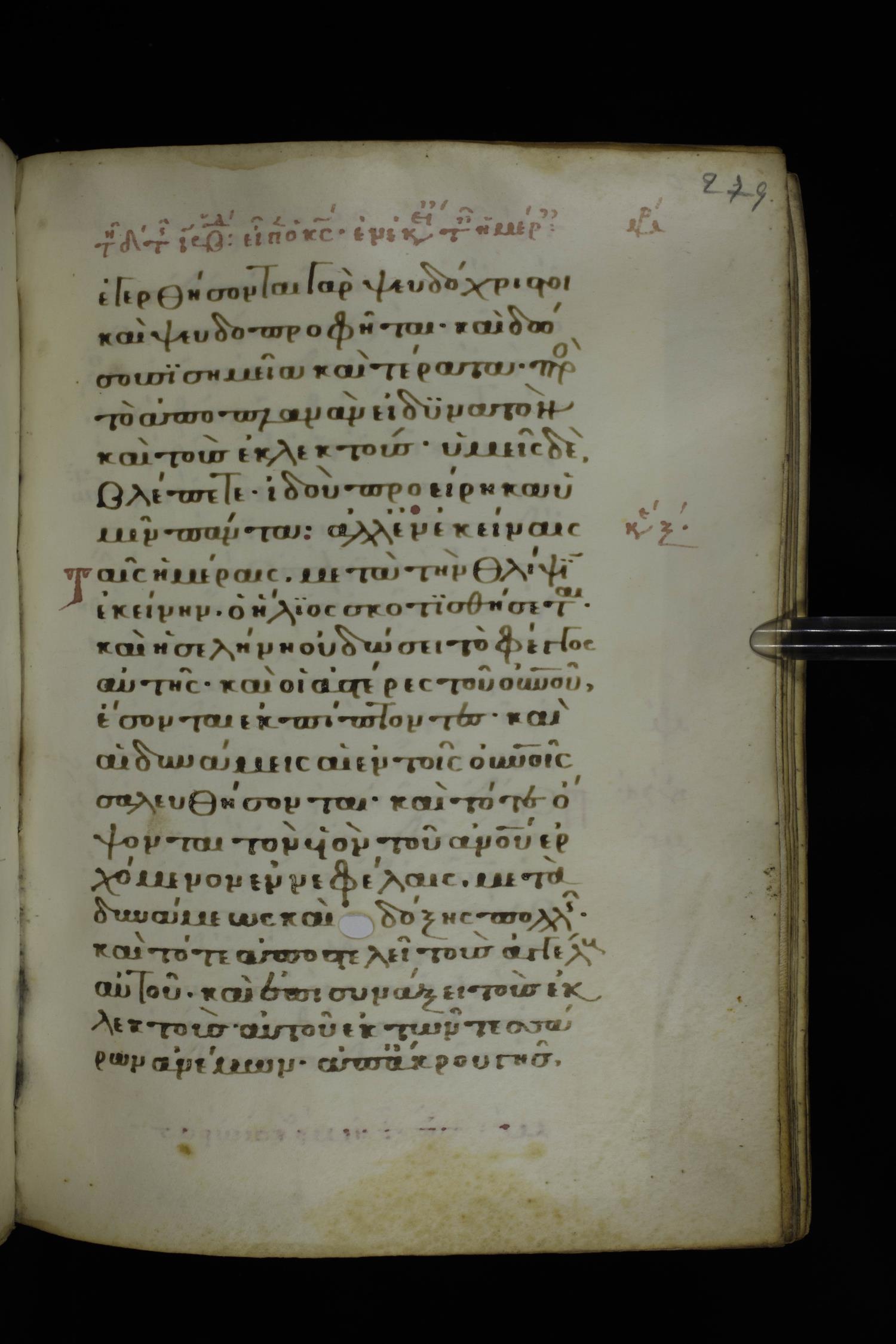 Fourteenth century minuscule of the Gospels on parchment; 332 leaves, 1 column, 21 lines per column. Images were taken at the National Library of Greece in Athens.