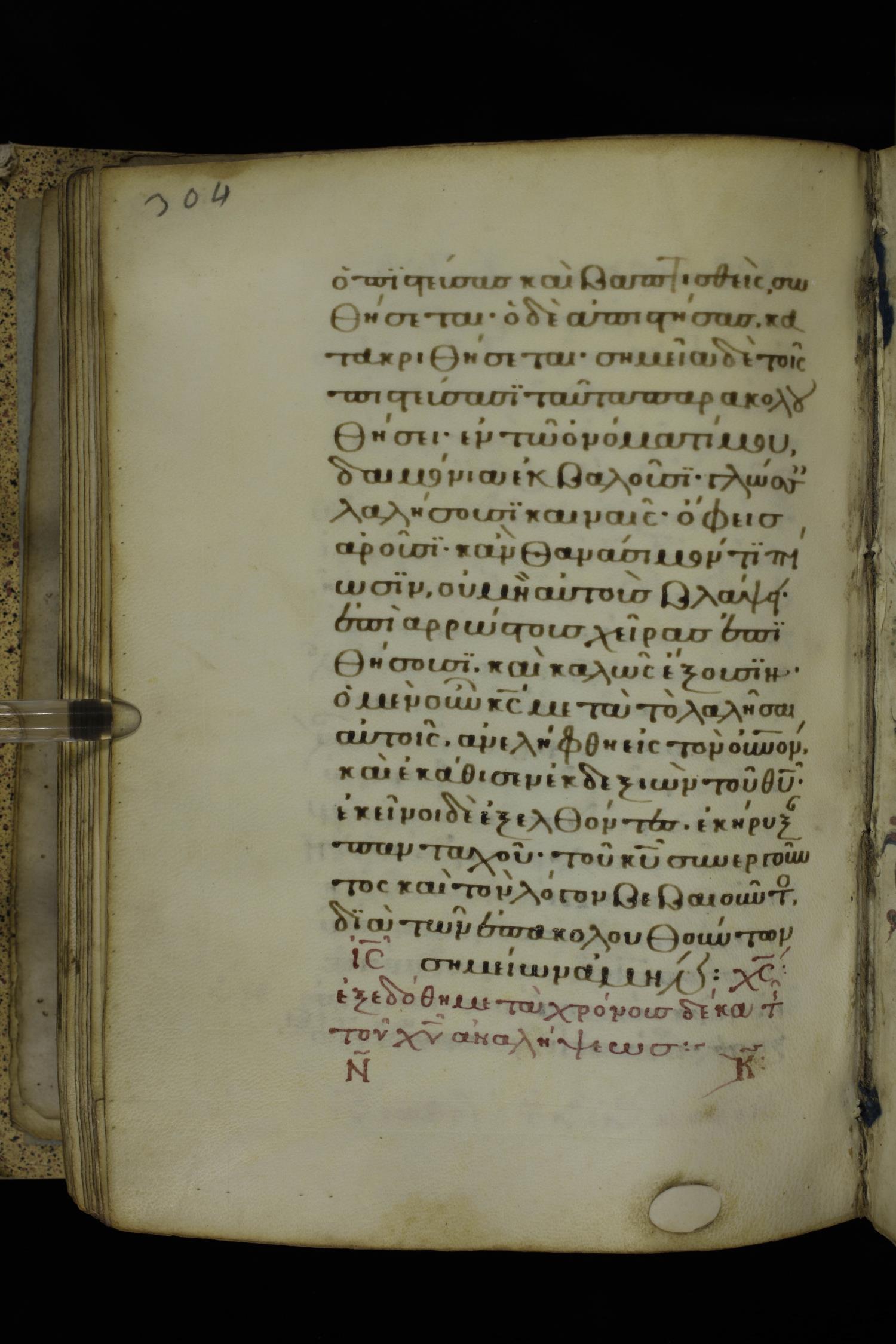 Fourteenth century minuscule of the Gospels on parchment; 332 leaves, 1 column, 21 lines per column. Images were taken at the National Library of Greece in Athens.