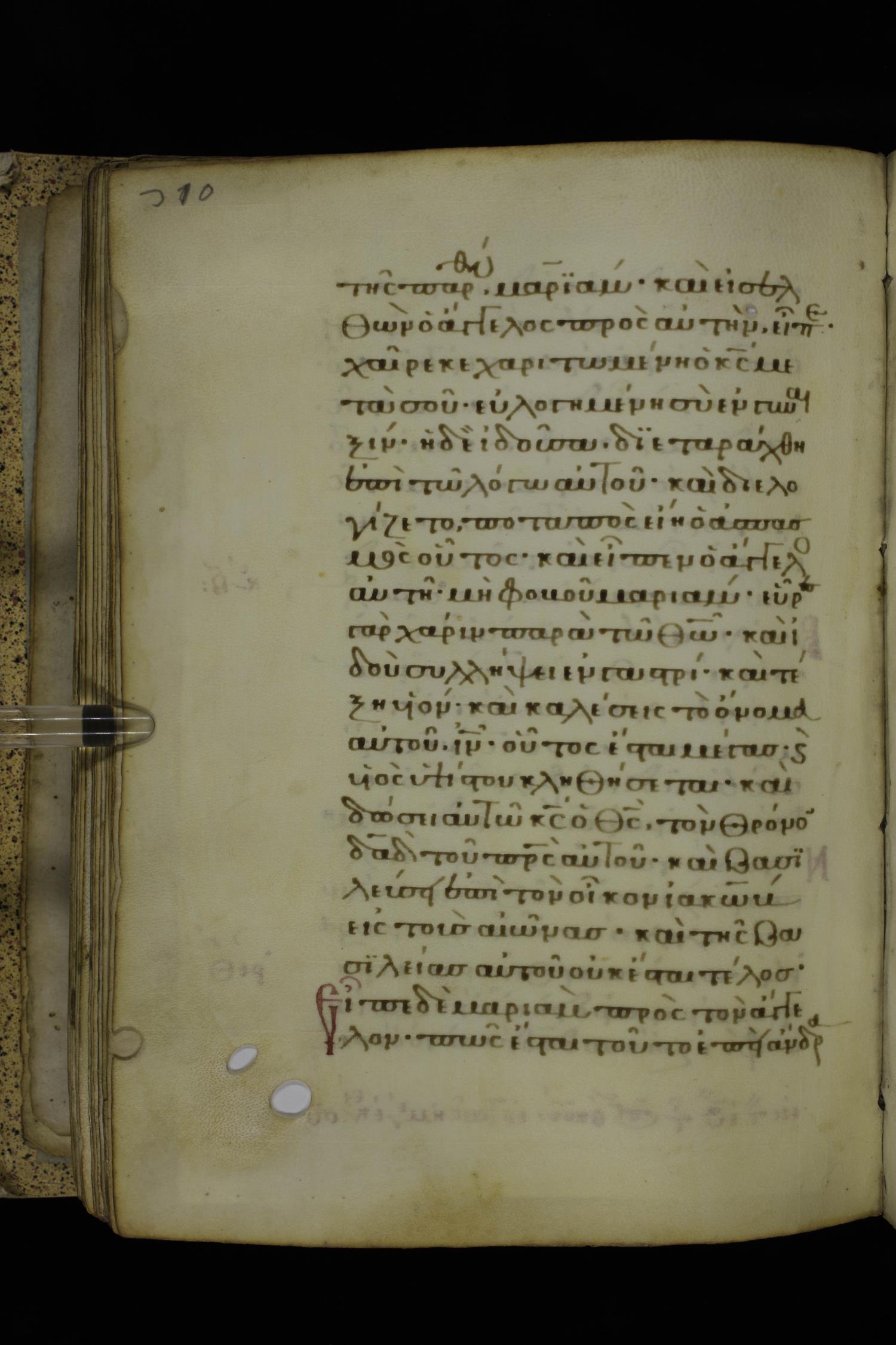 Fourteenth century minuscule of the Gospels on parchment; 332 leaves, 1 column, 21 lines per column. Images were taken at the National Library of Greece in Athens.
